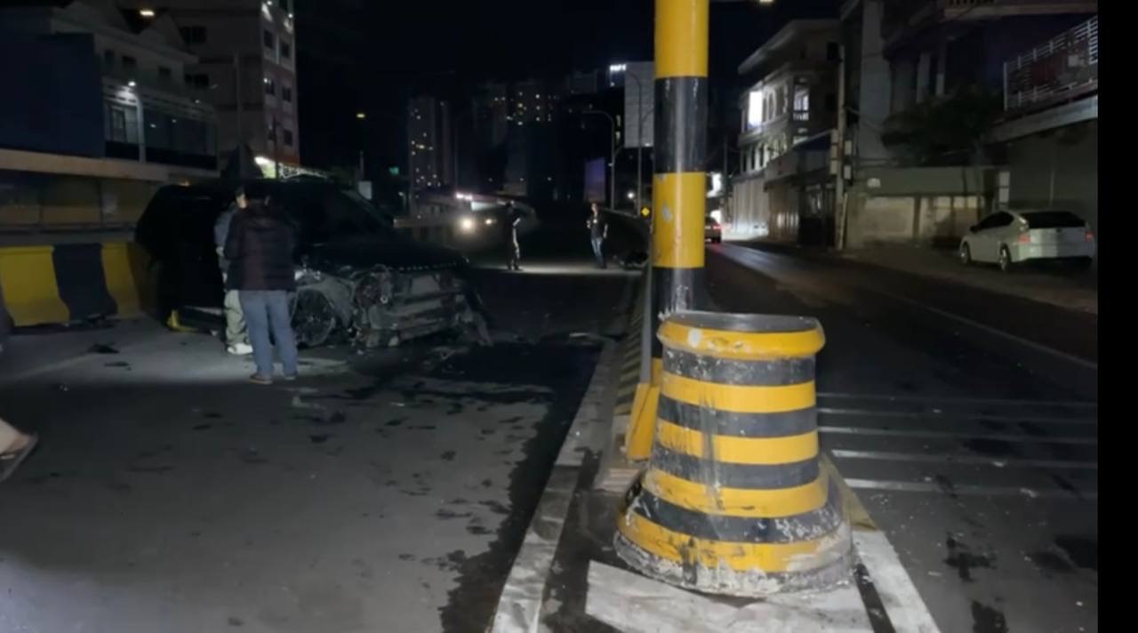 រថយន្តមួយគ្រឿង បេីកបុកគល់ស្ពានអាកាសមរតកតេជោ បណ្ដាលឲ្យក្រឡាប់រងការខូចខាតយ៉ាងដំណំ
