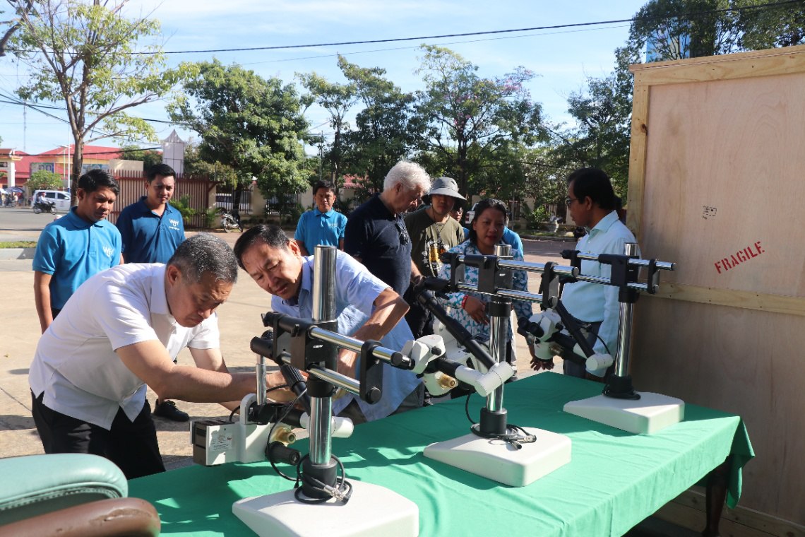 កំពង់ឆ្នាំង៖ នៅក្នុងមន្ទីរសុខាភិបាលខេត្តកំពង់ឆ្នាំង នាថ្ងៃទី២២ ខែវិច្ឆិកា ឆ្នាំ២០២៥ លោកវេជ្ជបណ្ឌិត ប្រាក់ វ៉ុន ប្រធានមន្ទីរសុខាភិបាលខេត្ត បានទទួលសម្ភារៈបរិក្ខាពេទ្យពីអង្គការមូលនិធិទឹកស្អាត និងគាំពារសុខភាព រួមនិងមន្ទីរពេទ្យSinghealth នៃប្រទេសសឹង្ហបុរី សំរាប់ជួយពិនិត្យព្យាបាលជំងឺជូនប្រជាជននៅក្នុងខេត្តកំពង់ឆ្នាំង។