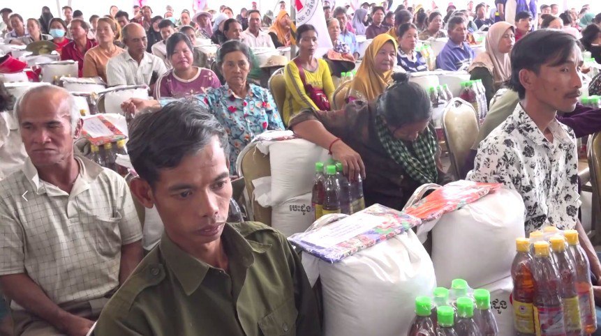 សូមបញ្ជាក់ថា អំណោយដែលបានផ្តល់ជូនដល់ពលរដ្ឋក្នុងមួយគ្រួសារមាន អង្ករ២០គីឡូក្រាម ត្រីខ១០កំប៉ុង ទឹកត្រី១យួរ សារុង១ និងថវិកា៥ម៉ឺនរៀល៕
