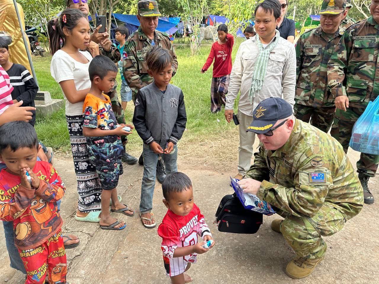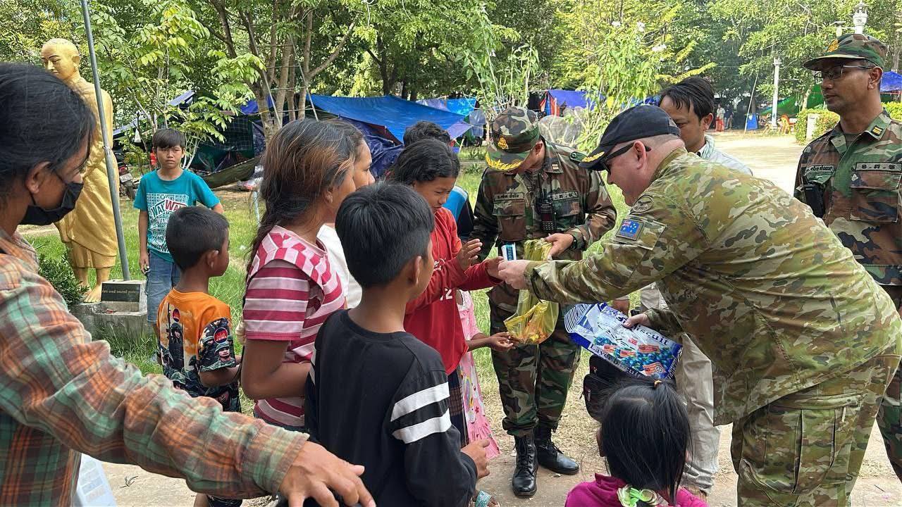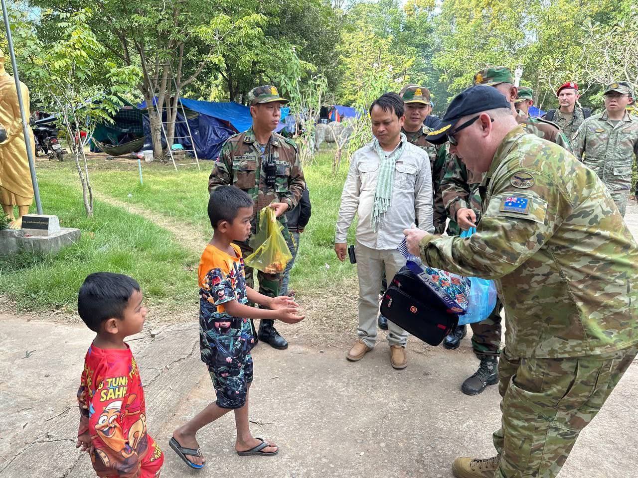 ក្រុមអនុព័ន្ធយោធាបរទេស ប្រចាំកម្ពុជា អញ្ជើញចុះទៅសួរសុខទុក្ខប្រជាជនស្លូតត្រង់កម្ពុជាដែលជាជនភៀសសឹក ស្នាក់នៅបណ្តោះអាសន្ននៅវត្តចាន់ស៊ី