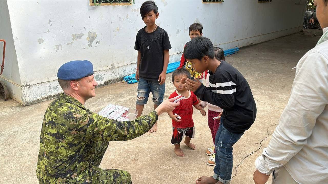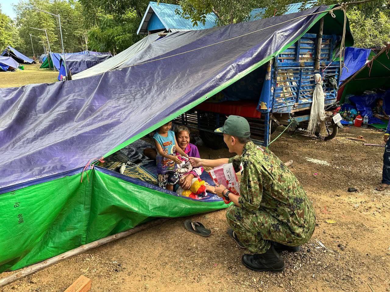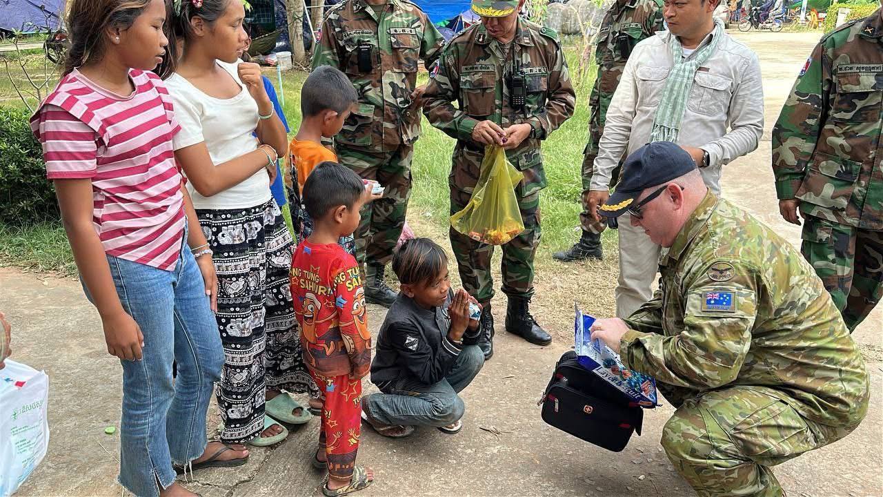 ក្រុមអនុព័ន្ធយោធាបរទេស ប្រចាំកម្ពុជា អញ្ជើញចុះទៅសួរសុខទុក្ខប្រជាជនស្លូតត្រង់កម្ពុជាដែលជាជនភៀសសឹក ស្នាក់នៅបណ្តោះអាសន្ននៅវត្តចាន់ស៊ី
