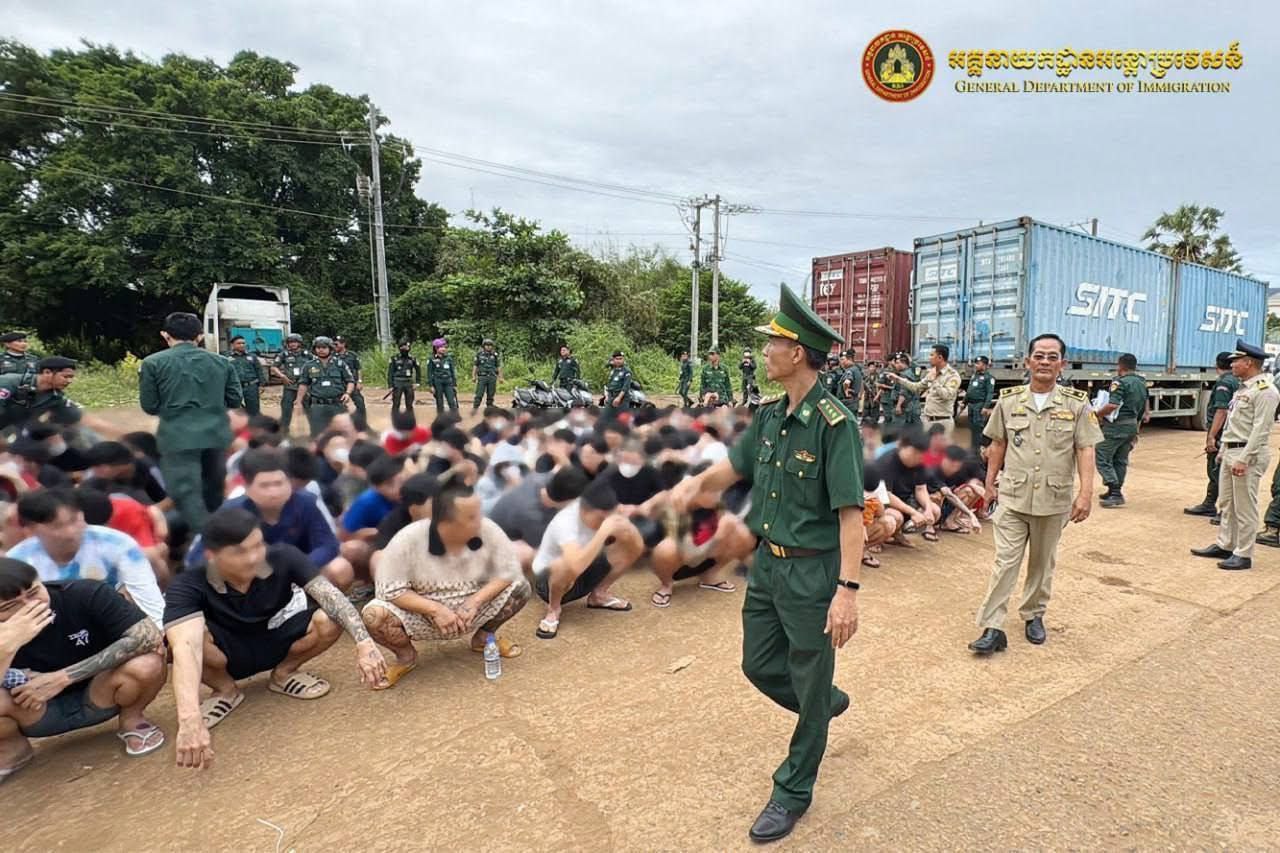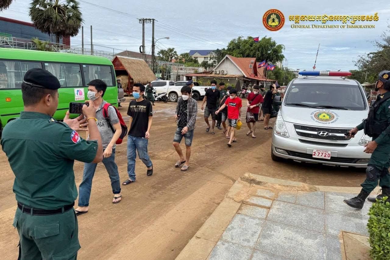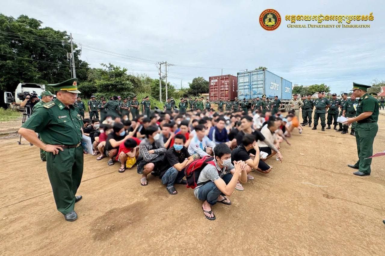 ភ្នំពេញ៖នៅថ្ងៃទី២១ ខែវិច្ឆិកា ឆ្នាំ២០២៥ អគ្គនាយកអន្តោប្រវេសន៍ នៃនាយកដ្ឋានស៊ើបអង្កេត និងអនុវត្តនីតិវិធី ធ្វើការបណ្តេញជនជាតិវៀតណាមសរុបចំនួន ១១០នាក់ (ស្រី១នាក់) ចេញពីព្រះរាជាណាចក្រកម្ពុជា តាមប៉ុស្តិ៍នគរបាលច្រកទ្វារព្រំដែនអន្តរជាតិត្រពាំងផ្លុង ខេត្តត្បូងឃ្មុំ ពាក់ព័ន្ធករណីបំពានប្រកាស ស្តីពីការបណ្តេញជនបរទេសចេញពីព្រះរាជាណាចក្រកម្ពុជា លួចស្នាក់នៅខុសច្បាប់ គ្មានលិខិតឆ្លងដែន និងលួចស្នាក់នៅធ្វើការងារខុសច្បាប់(Online Scams)។