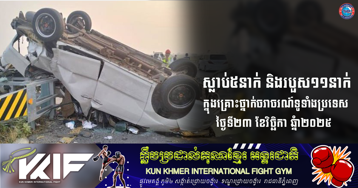 ស្លាប់៥នាក់ និងរបួស១១នាក់ ក្នុងគ្រោះថ្នាក់ចរាចរណ៍ទូទាំងប្រទេសថ្ងៃទី២៣ ខែវិច្ឆិកា ឆ្នំា២០២៥