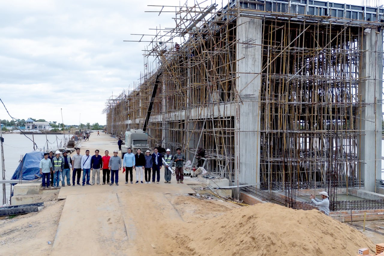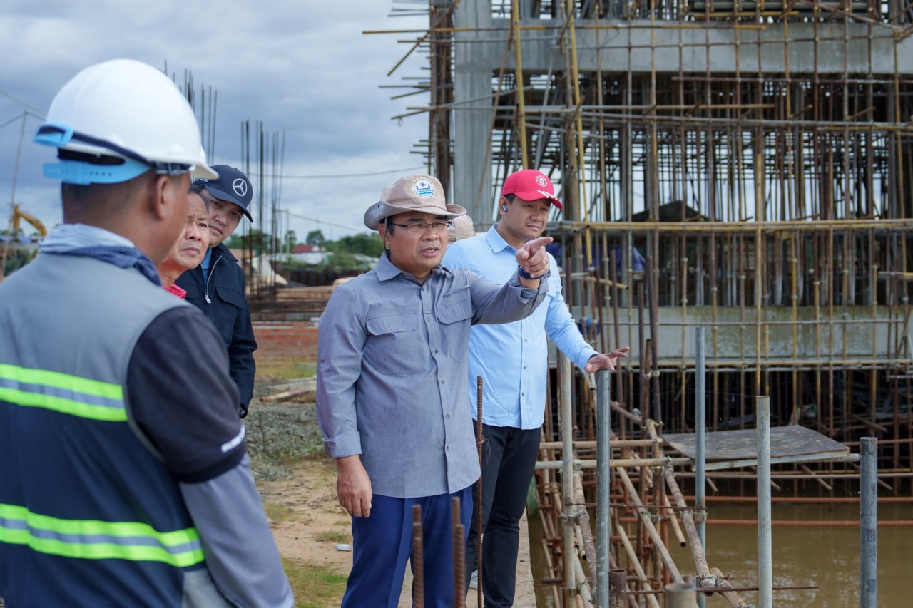 ឯកឧត្តមរដ្ឋមន្ត្រី ថោ ជេដ្ឋា អញ្ជើញចុះពិនិត្យជាក់ស្តែងវឌ្ឍនភាពការងារគម្រោងអភិវឌ្ឍន៍សំណង់ស្ទាក់ទឹកកំពង់គោ ស្ថិតក្នុងស្រុកកំពង់ស្វាយ ខេត្តកំពង់ធំ ដែលសម្រេចបានប្រមាណ ៧៧%