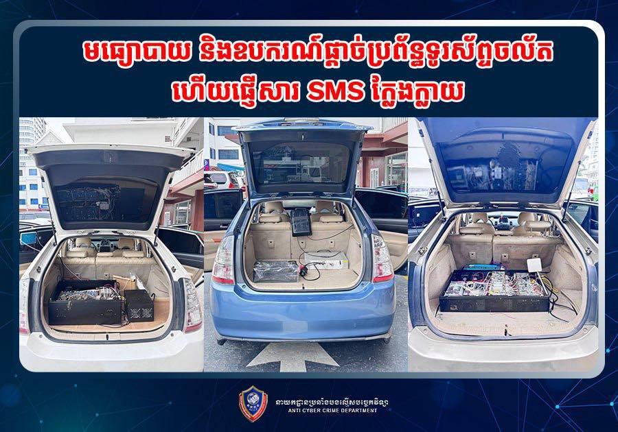 នៅថ្ងៃទី២៥ ខែវិច្ឆិកា ឆ្នាំ២០២៥ នេះ នាយកដ្ឋានប្រឆាំងបទល្មើសបច្ចេកវិទ្យា បានបង្ហោះលើបណ្ដាញសង្គមថា នាយកដ្ឋានប្រឆាំងបទល្មើសបច្ចេកវិទ្យា សហការជាមួយ នាយកដ្ឋាននគរបាលព្រហ្មទណ្ឌ បង្រ្កាបបានករណី ការប្រើប្រាស់ឧបករណ៍ផ្តាច់ប្រព័ន្ធទូរស័ព្ទចល័ត ហើយផ្ញើសារ SMS (FAKE Base Transceiver Station)។