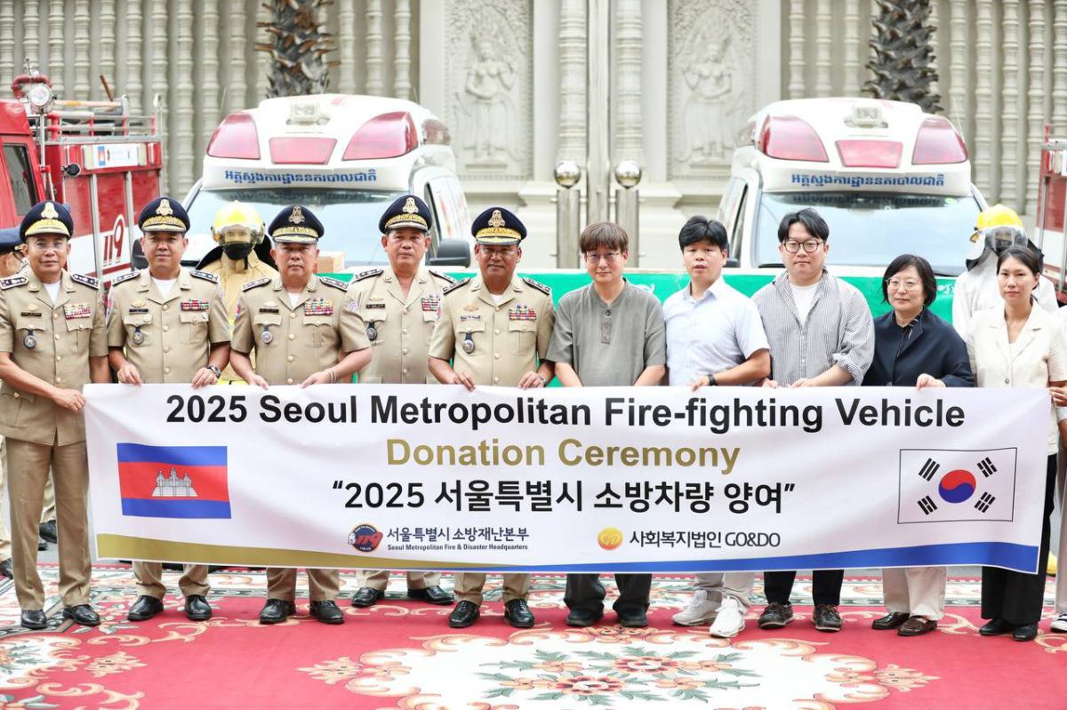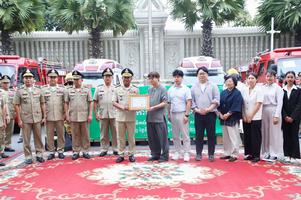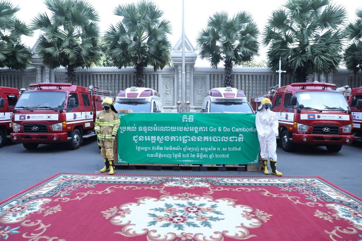 ភ្នំពេញ ៖ រដ្ឋាភិបាលនៃសាធារណៈរដ្ឋកូរ៉េ តាមរយៈអង្គការGO&DO(NGO)នៅរសៀលថ្ងៃទី២៥ ខែវិច្ឆិកា ឆ្នាំ២០២៥នេះបានបន្តផ្តល់ជំនួយជារថយន្តពន្លត់អគ្គិភ័យ និងឯកសណ្ឋានពន្លត់អគ្គិភ័យ ព្រមទាំងឯកសណ្ឋានការពារសារធាតុគីមី ដល់អគ្គស្នងការនគរបាលជាតិជាច្រើន ខណៈជំនួយឥតសំណងនេះនឹងធ្វើឲ្យកងកម្លាំងនៃប្រតិបត្តិការលើការងារពន្លត់អគ្គិភ័យនេះកាន់តែងាយស្រួលក្នុងការអនុវត្តការងារ ជួយសង្រ្គោះបងប្អូនប្រជាពលរដ្ឋពេលជួបបញ្ហាអគ្គិភ័យ។