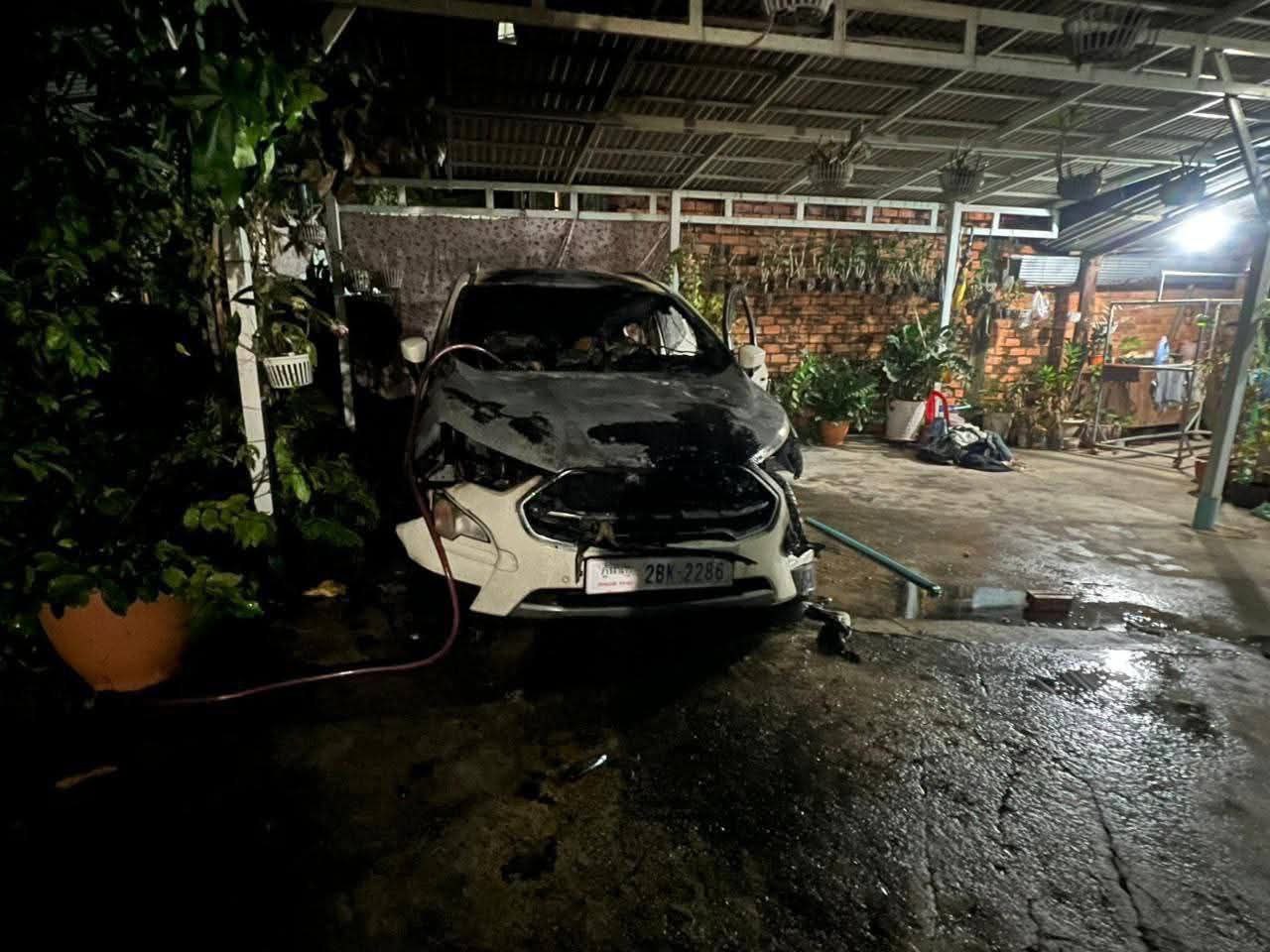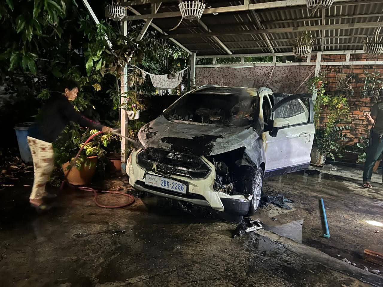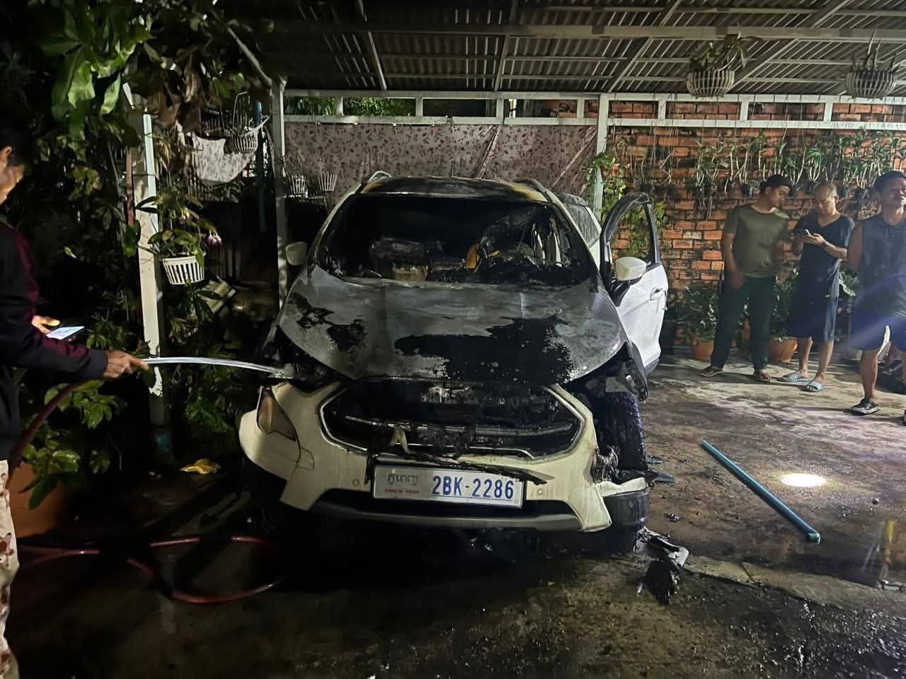 ម្ចាស់រថយន្តមានឈ្មោះ គួន វង្សសុគន្ធី ភេទប្រុសអាយុ៣៥ឆ្នាំ មុខរបរ បុគ្គលិកធនាគារ មានទីលំនៅក្នុងភូមិសង្កាត់កើតហេតុ ហើយរថយន្តដែលឆេះ ម៉ាក Ford ពណ៌ស សេរីឆ្នាំ២០២០ ពាក់ស្លាកលេខ2BX-2286 រងការខូចខាតធ្ងន់ធ្ងរ ។