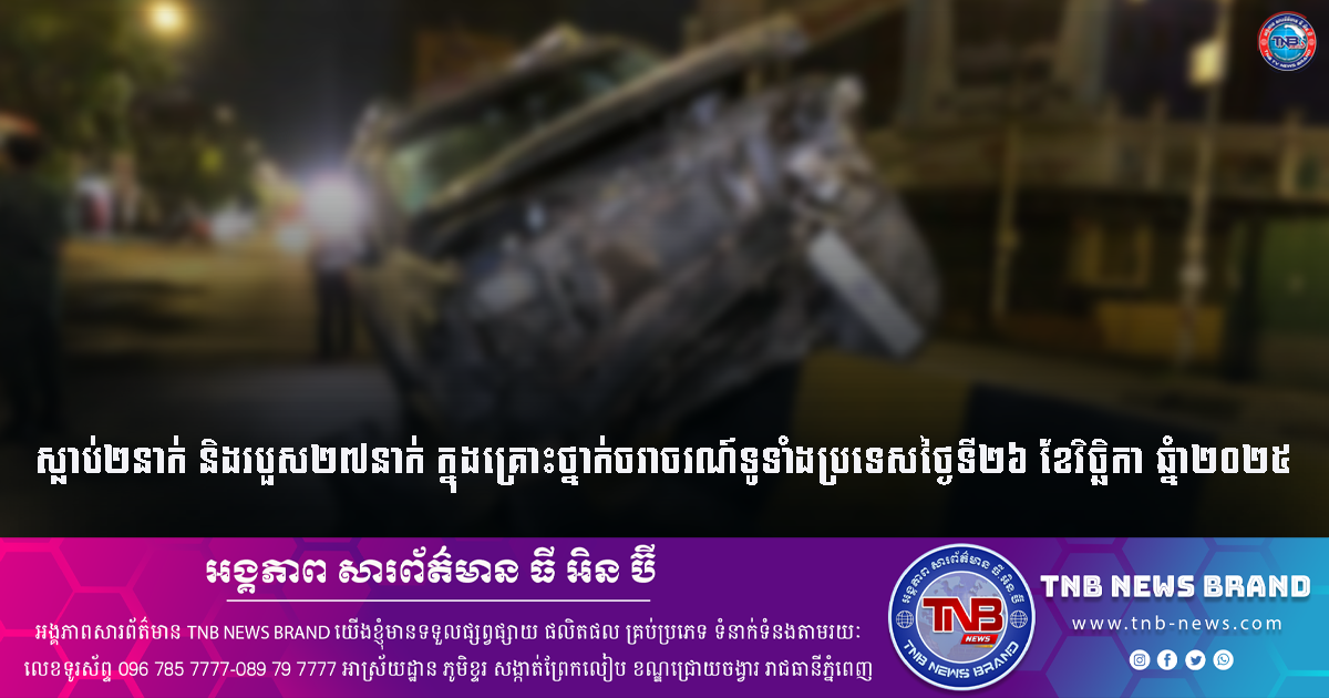 ស្លាប់២នាក់ និងរបួស២៧នាក់ ក្នុងគ្រោះថ្នាក់ចរាចរណ៍ទូទាំងប្រទេសថ្ងៃទី២៦ ខែវិច្ឆិកា ឆ្នំា២០២៥