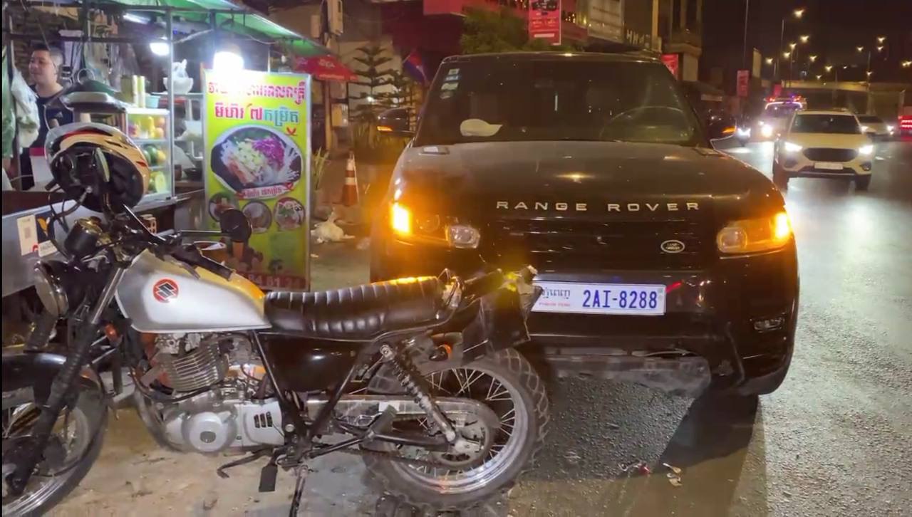 មុនពេលកេីតហេតុ គេបានឃើញបុរសម្នាក់ បានបេីករថយន្តម៉ាកRANG ROVER ពណ៌ខ្មៅ ពាក់ស្លាកលេខ ភ្នំពេញ 2AI 8288 បានបេីកធ្វើដំណើរចុះពីលើស្ពានអាកាសស្ទឹងមានជ័យ ទិសដៅពីត្បូងទៅជើង លុះមកដល់ចំនុចកេីតហេតុ ដែលជាផ្លូវកោង ហើយណាមួយអ្នកបេីកស្រវឹង ក៏ជ្រុលទៅបុកនិងម៉ូតូ២គ្រឿង ក្នុងមានម៉ូតូ ហុងដាស្តុបពី ពណ៌ក្រហម ពាក់ស្លាកលេខ ភ្នំពេញ 1CS 0443 ដែលជិះដោយនារីម្នាក់ និងធន់ធំមួយទៀតម៉ាកYAMAHA ពណ៌ស ពាក់ស្លាកលេខ ភ្នំពេញ 1LY5858 ដែលជិះដោយបុរសម្នាក់ កំពុងនាំគ្នាអង្គុយលើម៉ូតូ រងចាំទិញមីឆាបាយ បណ្តាលឲ្យម៉ូតូរងការខូចខាត ក៏ដូចជាធ្វើឲ្យមនុស្សប្រុសស្រី២នាក់ រងរបួសត្រង់ជេីង ត្រូវបានយកទៅសង្គ្រោះនៅគ្លីនិកឯកជនដែលនៅក្បែរនោះ ។