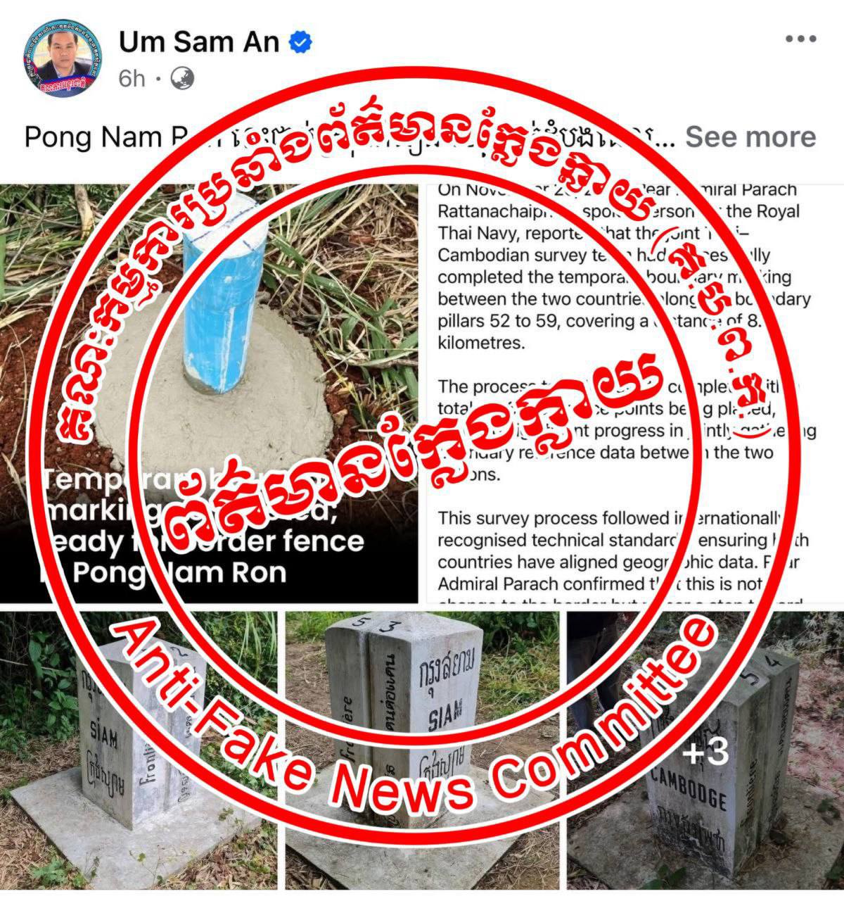 ព័ត៌មានដែលផ្សព្វផ្សាយដោយគណនី អ៊ុំ សំអាន Um Sam An នេះជាព័ត៌មានក្លែងក្លាយ ប្រឌិត ញុះញង់ខុសពីការពិត