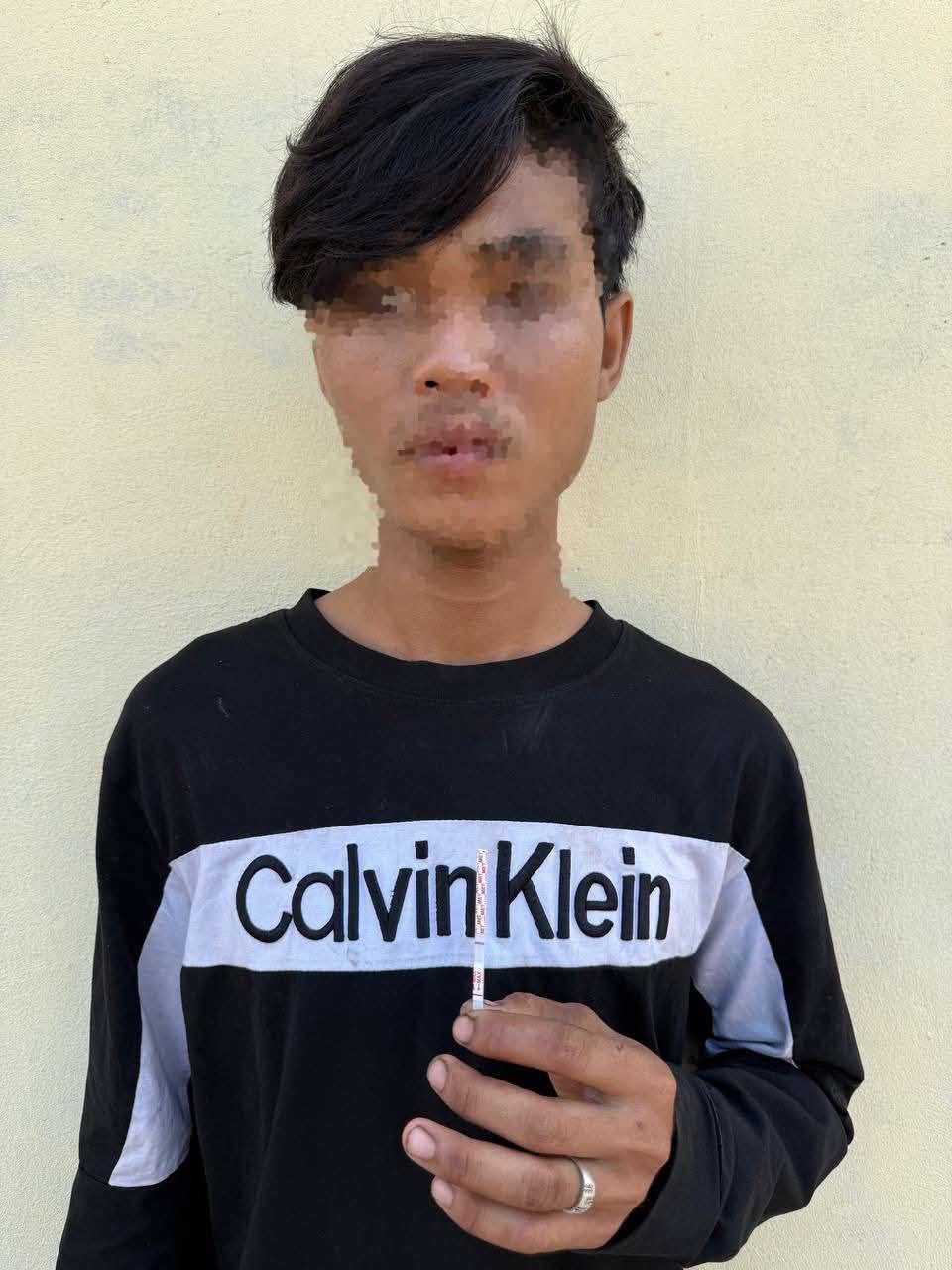 ប្រភពដដែលបន្តថាបានឃាត់ខ្លួនជនសង្ស័យ និងធ្វើតេស្តសារធាតុញៀន គឺវិជ្ជមាន(+) ព្រមទាំងដកហូត វត្ថុតាង:កាំបិត០១ដើមម៉ូតូ០១គ្រឿង ម៉ាកអិចសាយទ័រ គ្មានស្លាកលេខ (បិទស្គត់ពណ៍ផ្កាឈូក)។