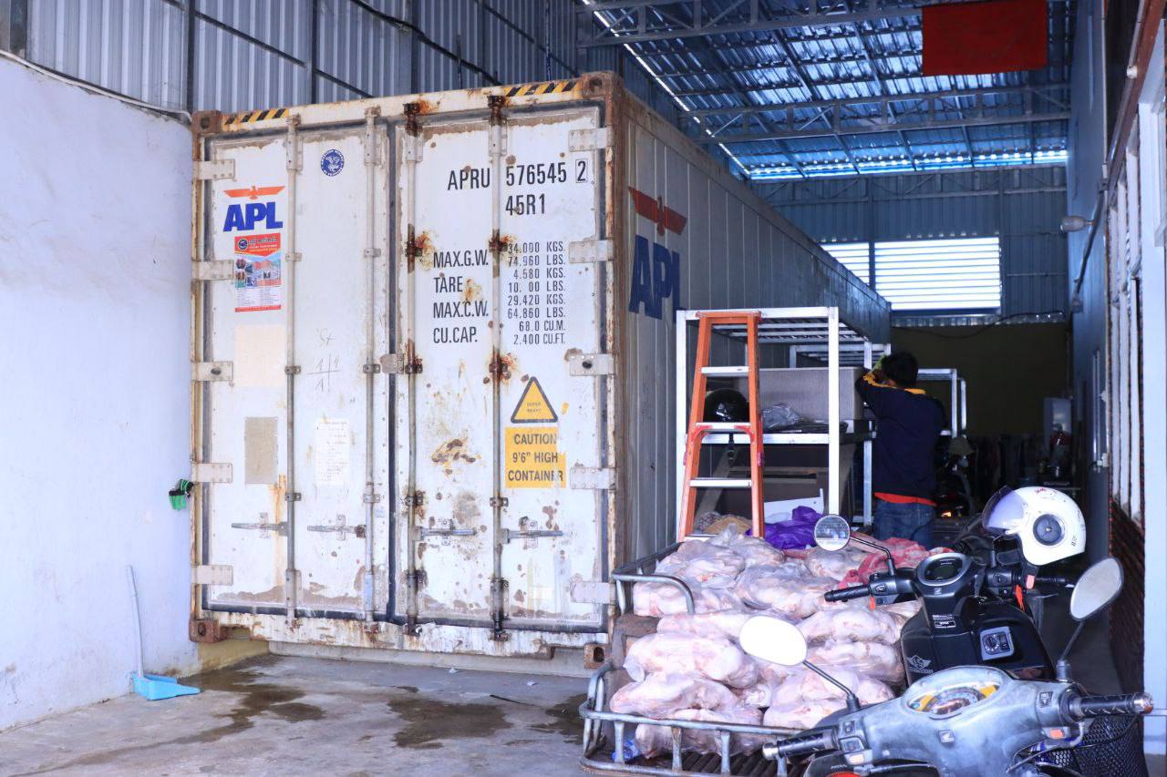 ក្រុមការងារចម្រុះនិងអាជ្ញាធរមូលដ្ឋាន ចុះពិនិត្យមើលឃ្លាំង ២កន្លែង ដែលបានស្តុបទុកសាច់បង្កក នៅក្រុងប៉ោយប៉ែត ខេត្តបន្ទាយមានជ័យ