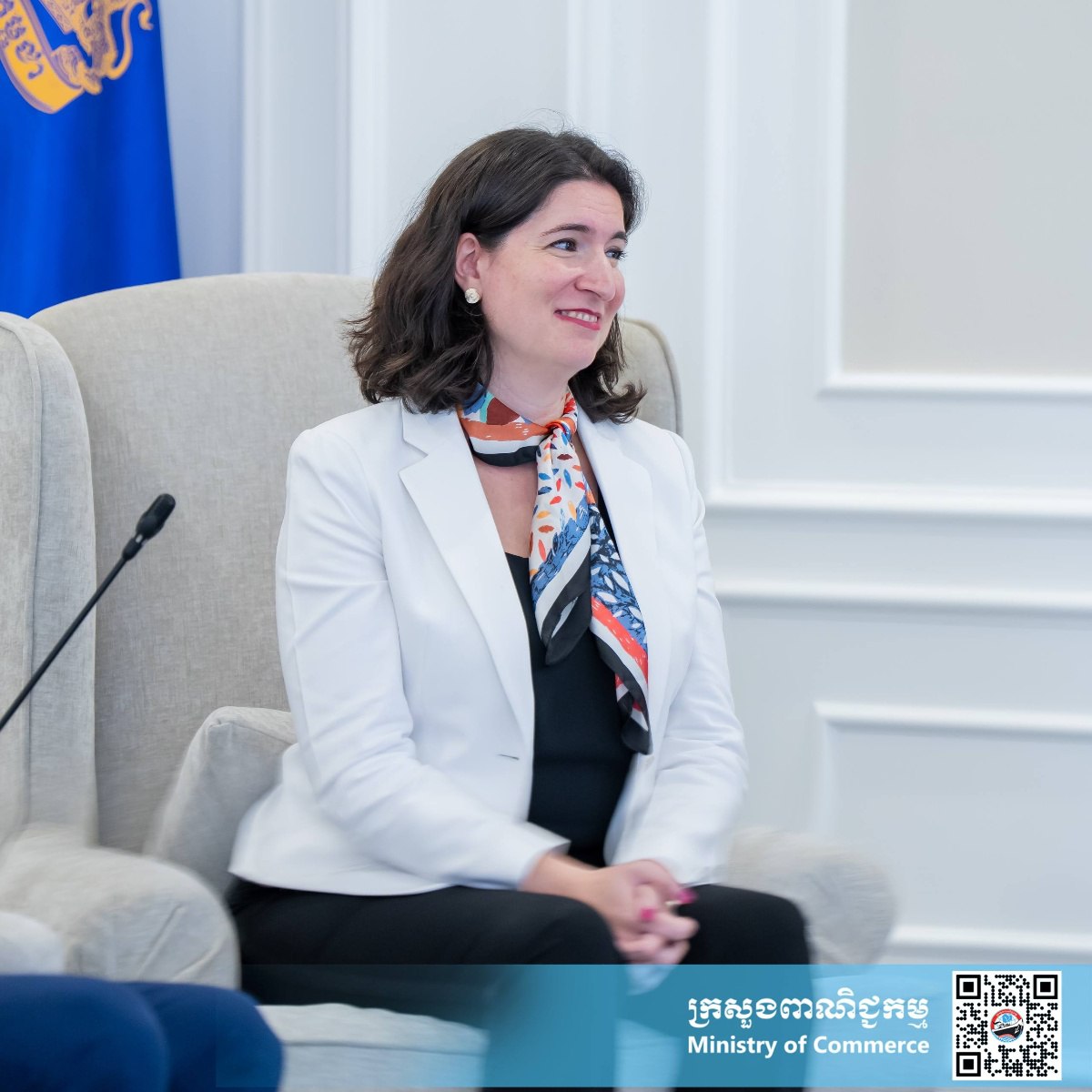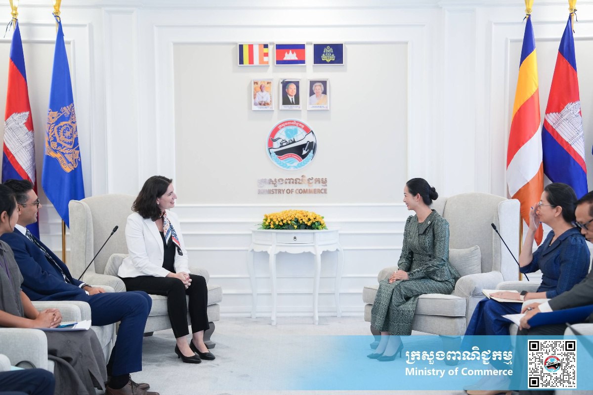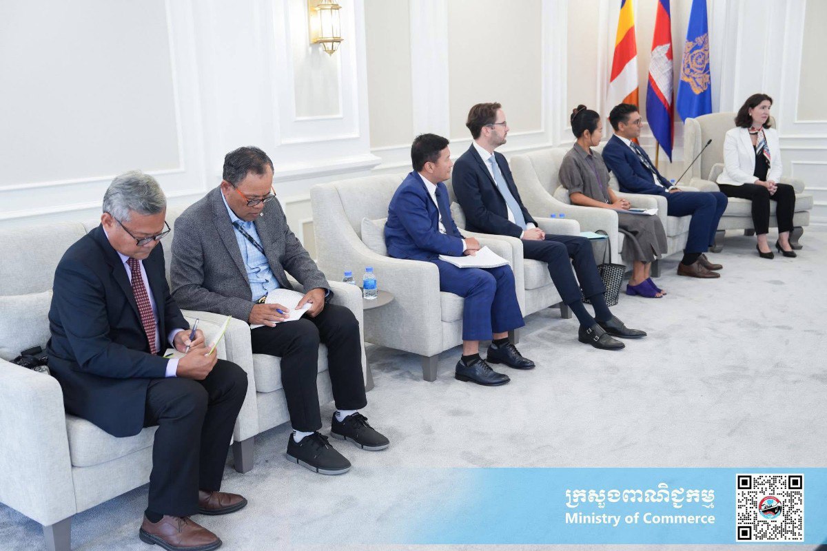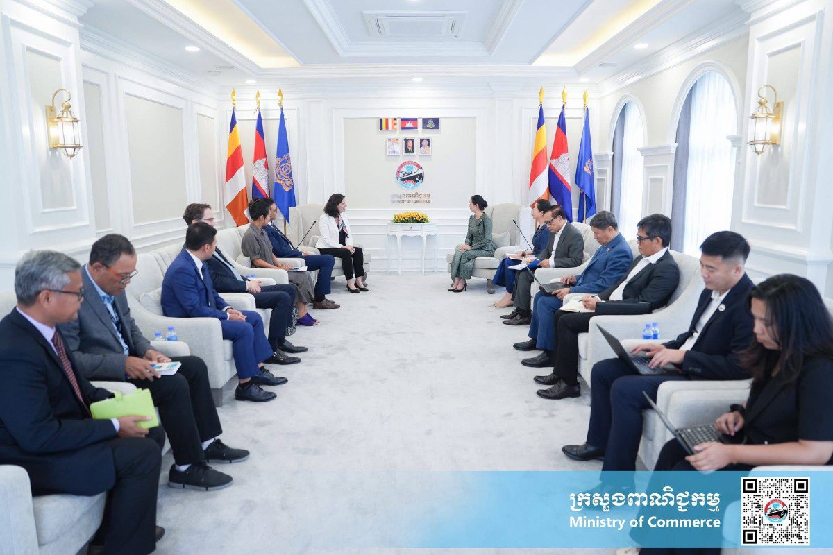 នារសៀលថ្ងៃព្រហស្បតិ៍ ទី២៧ ខែវិច្ឆិកា ឆ្នាំ២០២៥ នៅទីស្តីការក្រសួងពាណិជ្ជកម្ម លោកជំទាវ ចម និម្មល រដ្ឋមន្ត្រីក្រសួងពាណិជ្ជកម្ម បានអនុញ្ញាតជូន លោកស្រី Tania Meyer នាយិកាធនាគារពិភពលោកប្រចាំប្រទេសកម្ពុជា និងសហការី ចូលជួបសម្តែងការគួរសម និងពិភាក្សាការងារ ដើម្បីពង្រឹងភាពជាដៃគូ និងកិច្ចសហប្រតិបត្តិការក្នុងការគាំទ្រដល់កម្ពុជាក្នុងការអភិវឌ្ឍវិស័យពាណិជ្ជកម្ម។