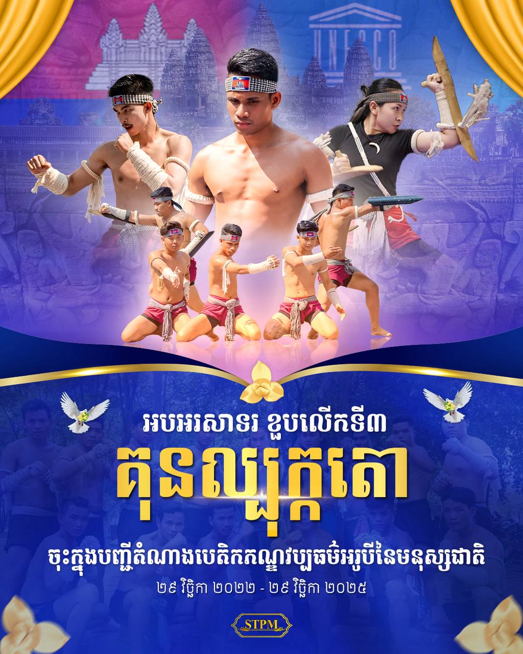 (ភ្នំពេញ)៖ នៅថ្ងៃទី២៩ ខែវិច្ឆិកា ឆ្នាំ២០២៥នេះ នៃជាខួប៣ឆ្នាំនៃការដាក់បញ្ចូលគុនល្បុក្កតោ ក្នុងបញ្ជីបេតិកភណ្ឌវប្បធម៌អរូបីនៃមនុស្សជាតិ របស់អង្គការយូណេស្កូ (២៩ វិច្ឆិកា ២០២២ – ២៩ វិច្ឆិកា ២០២៥)។