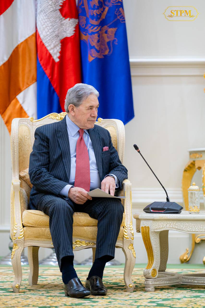 សម្តេចមហាបវរធិបតី ហ៊ុន ម៉ាណែត នាយករដ្ឋមន្ត្រីនៃព្រះរាជាណាចក្រកម្ពុជា ជួបជាមួយ ឯកឧត្តម Winston Peters រដ្ឋមន្ត្រីការបរទេសនូវែលសេឡង់ ក្នុងជំនួបសម្តែងការគួរសម និងពិភាក្សាការងារ នៅវិមានសន្តិភាព។