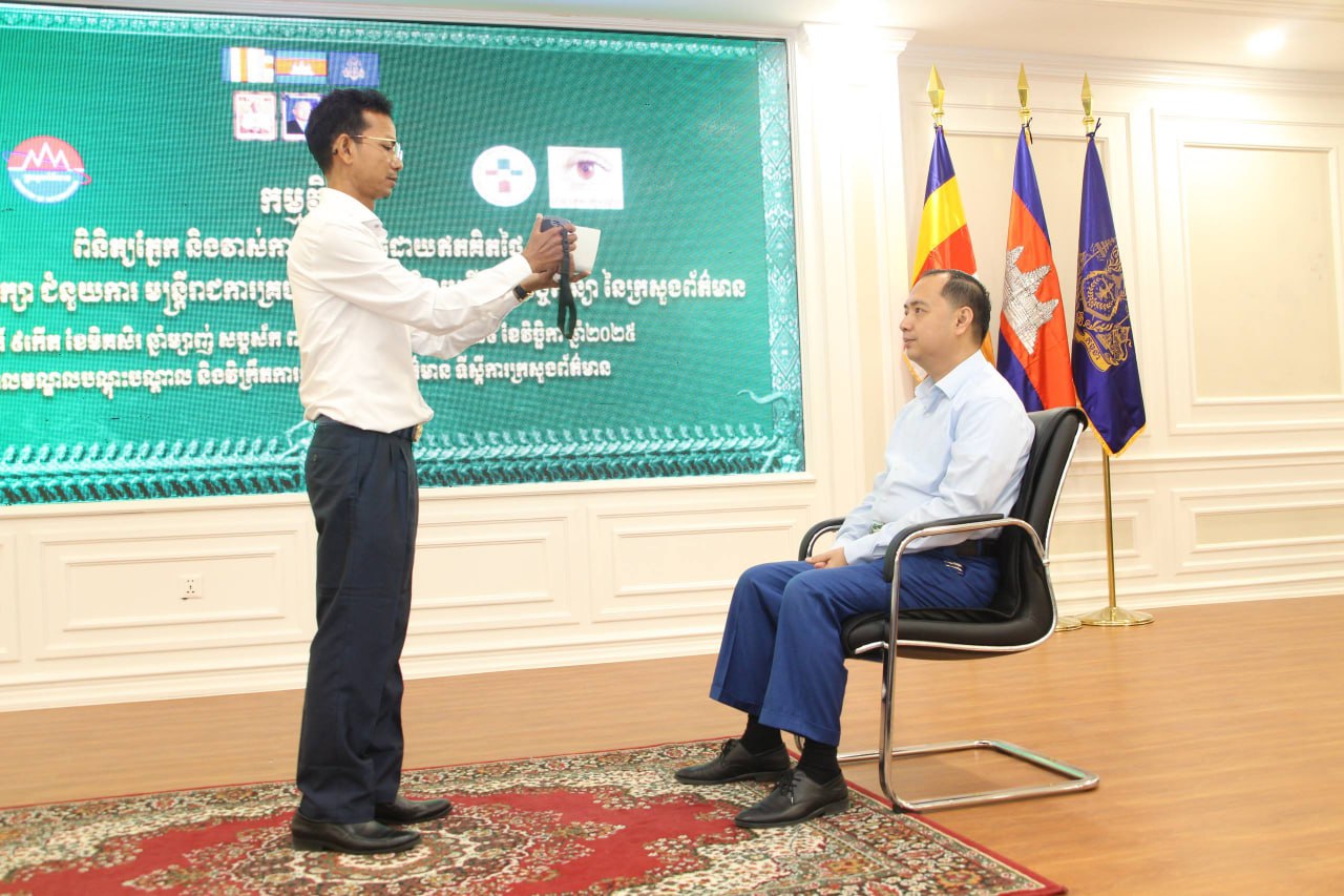 ឯកឧត្តម នេត្រ ភក្រ្តា រដ្ឋមន្ត្រីក្រសួងព័ត៌មាន អញ្ជើញជាអធិបតីកម្មវិធីពិនិត្យភ្នែក និងវាស់កាត់វ៉ែនតា ជាប្រភេទវ៉ែនតាការពារកុំព្យូទ័រ វ៉ែនតាមីញ៉ូប និងវ៉ែនតាសម្រាប់អានអក្សរ ជូនដល់ថ្នាក់ដឹកនាំ និងមន្ត្រីរាជការក្រសួងព័ត៌មានគ្រប់លំដាប់ថ្នាក់ ដោយឥតគិតថ្លៃ នាថ្ងៃទី២៩ ខែវិច្ឆិកា ឆ្នាំ២០២៥ នៅសាលមណ្ឌលបណ្តុះបណ្តាល និងវិក្រឹតការវិជ្ជាជីវៈសារព័ត៌មាន ទីស្តីការក្រសួងព័ត៌មាន ដោយសហការជាមួយក្រុមគ្រូពេទ្យភ្នែក គៀនឃ្លាំង។