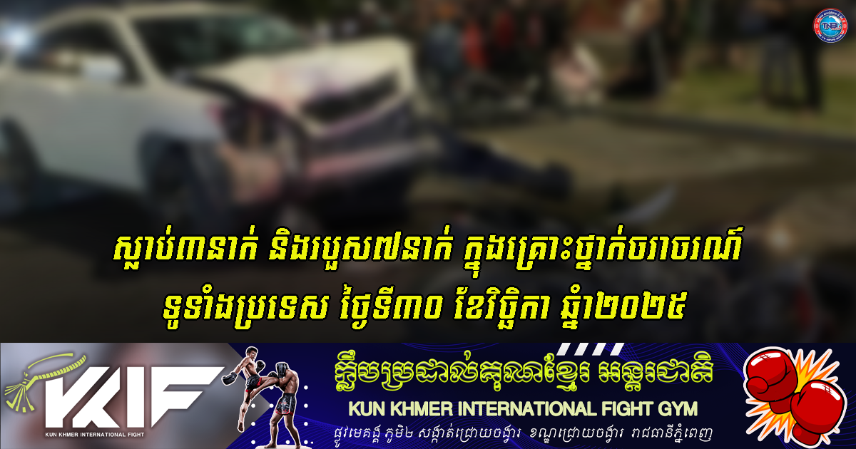 ស្លាប់៣នាក់ និងរបួស៧នាក់ ក្នុងគ្រោះថ្នាក់ចរាចរណ៍ទូទាំងប្រទេសថ្ងៃទី៣០ ខែវិច្ឆិកា ឆ្នំា២០២៥