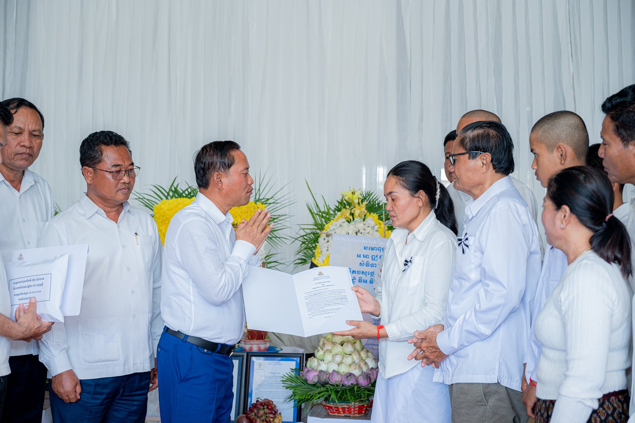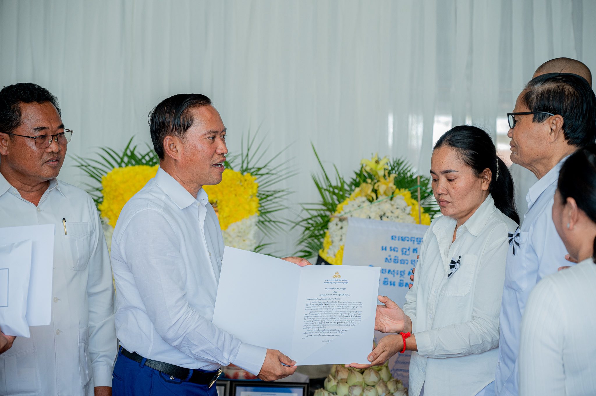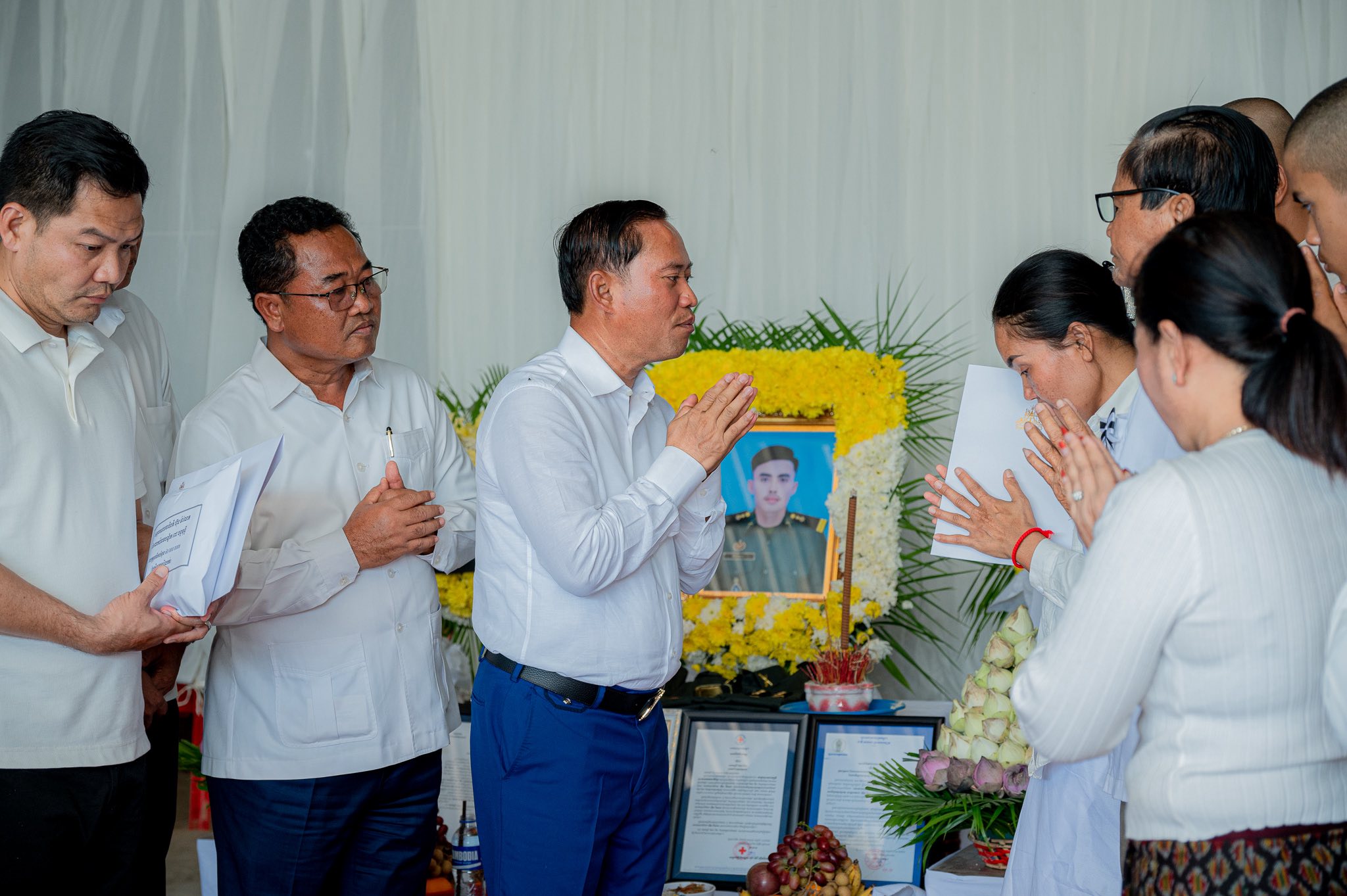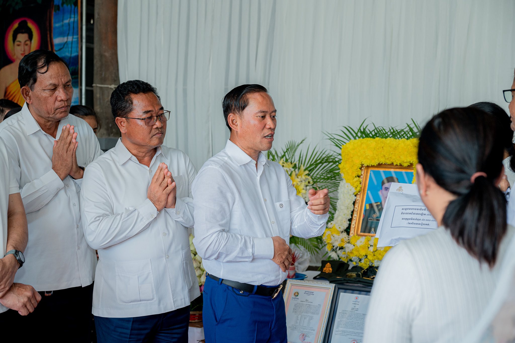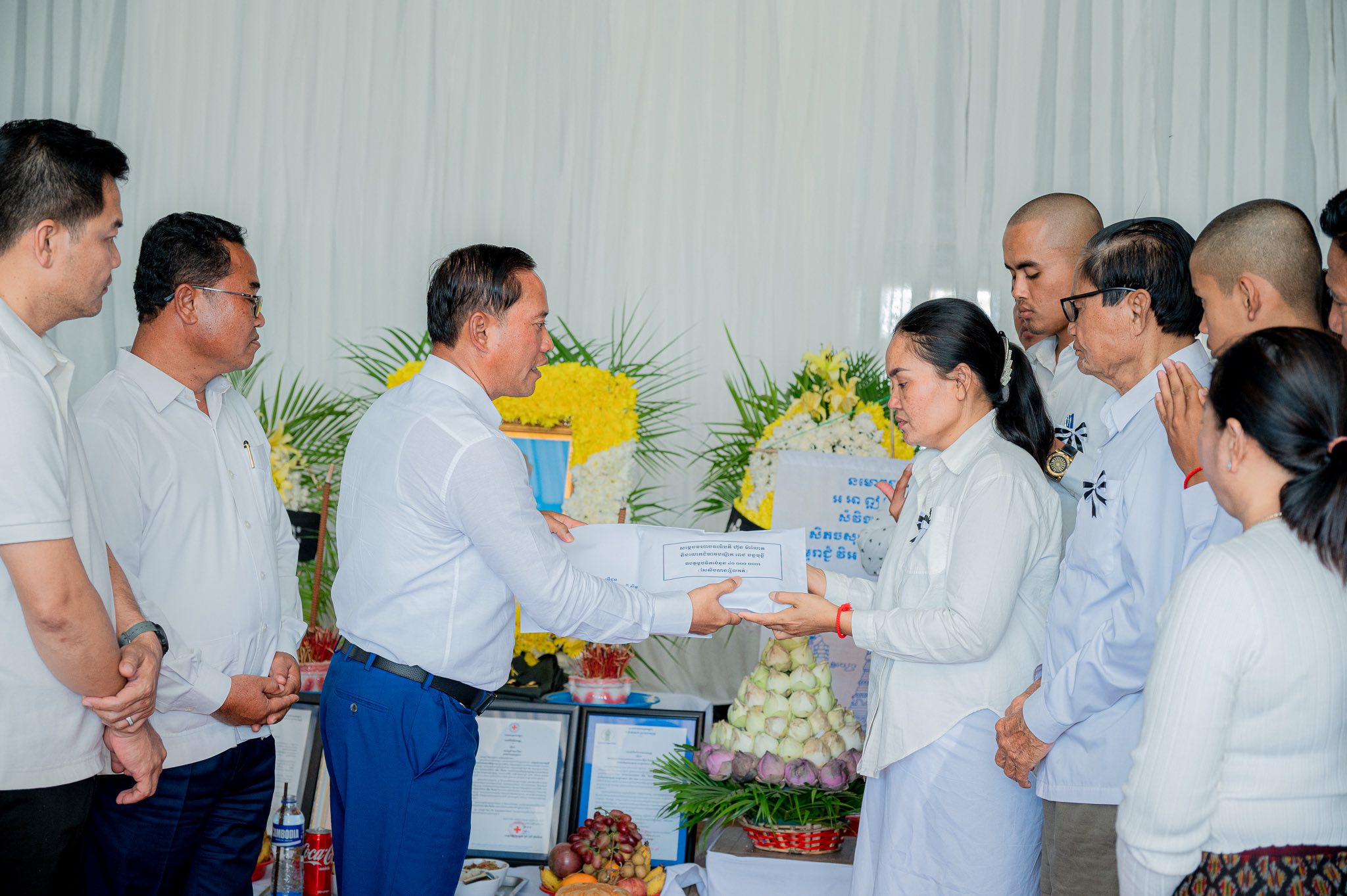 តាកែវ: នារសៀលថ្ងៃទី៣០ ខែវិច្ឆិកា ឆ្នាំ២០២៥ ឯកឧត្តម វ៉ី សំណាង អភិបាលខេត្តកែវ បាននាំយកថវិកា ដែលជាអំណោយដ៏ថ្លៃថ្លារបស់ សម្ដេចមហាបវរធិបតី ហ៊ុន ម៉ាណែត និងលោកជំទាវបណ្ឌិតពេជ្រចន្ទមុនីហ៊ុនម៉ាណែត ចំនួន ៤០.០០០.០០០ (សែសិបលានរៀល) និងសាររំលែកទុក្ខ ទៅប្រគល់ជូនដល់គ្រួសារនៃសពវីរៈយុទ្ធជន ស៊ឹម ពិសាល ដែលបានពលីក្នុងពេលបំពេញភារកិច្ចនៅសមរភូមិមុខ ៕