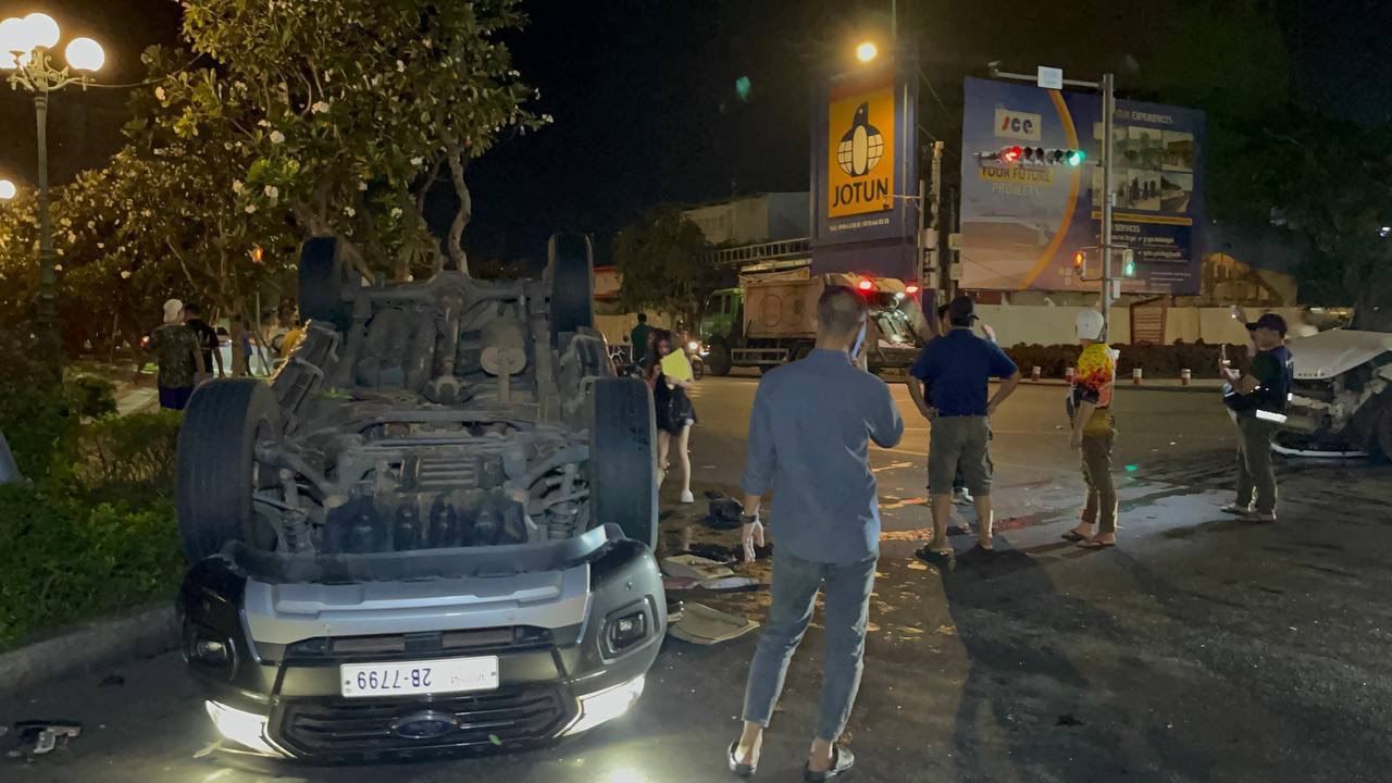 រថយន្ត២គ្រឿងបុកគ្នា ត្រង់ចំណុចស្តុបផ្លូវបំបែកជាបួន បណ្ដាលឲ្យមួយគ្រឿងក្រឡាប់បោកខ្ទប់និងបង្គោលភ្លើងរងការខូចខាតធ្ងន់ ធ្វើឲ្យមនុស្សពីរនាក់រករបួសបញ្ជូនទៅមន្ទីរពេទ្យ