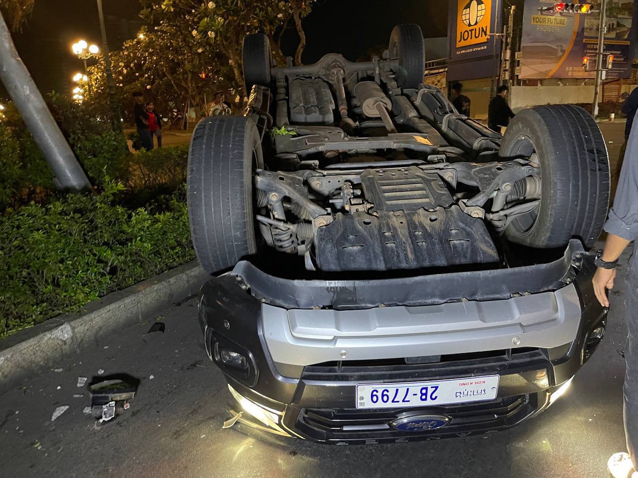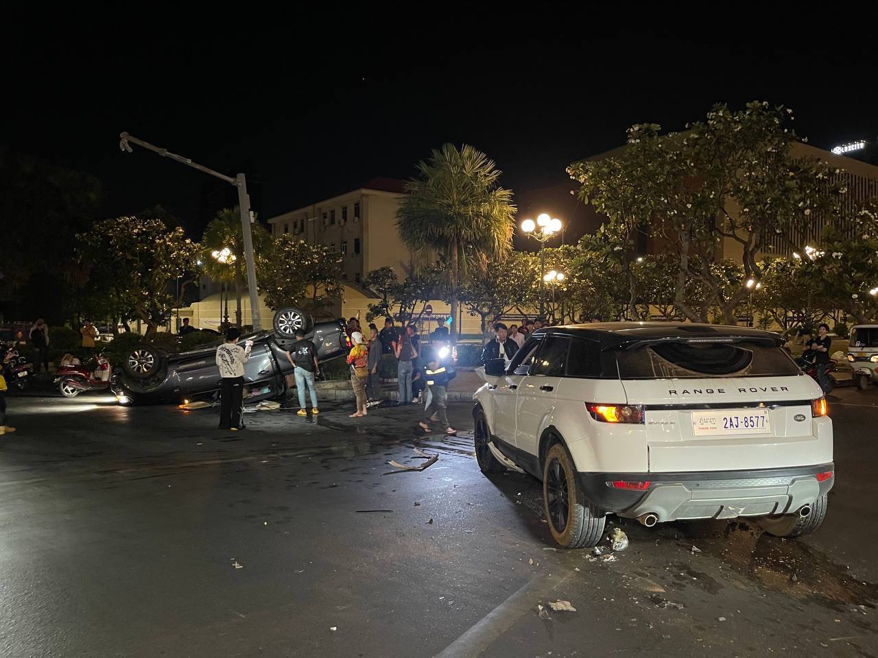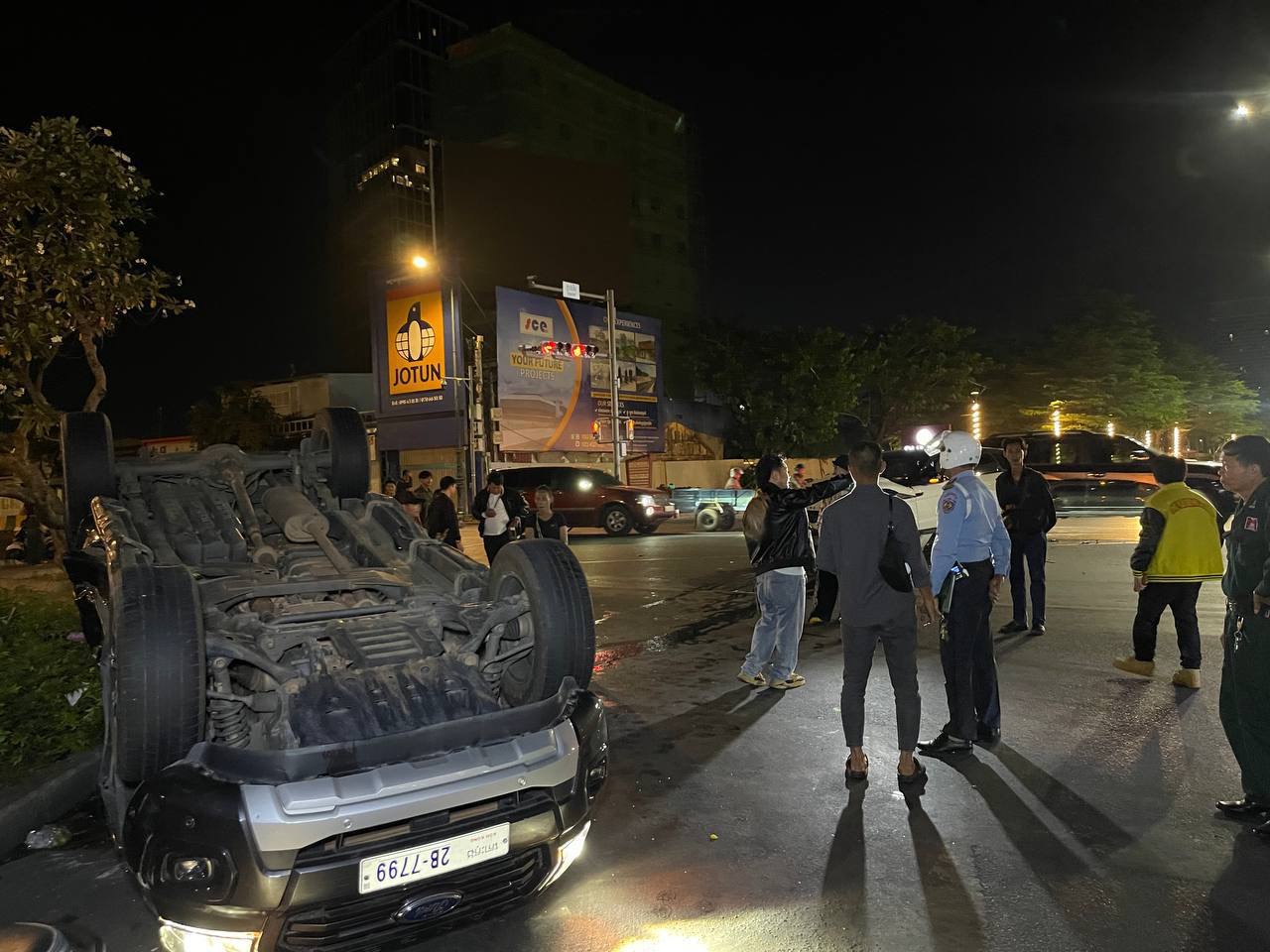 នៅមុនពេលកាត់ហេតុគេឃើញរថយន្តម៉ាក ford ranger មួយគ្រឿងពាក់ស្លាកលេខភ្នំពេញ2B-7799 បើកបរដោយបុរសម្នាក់រួមដំណើរជាមួយនឹងមនុស្សប្រុសស្រីបួននាក់ទៀតធ្វើដំណើរចេញពីផ្លូវតំបន់បឹងកក់ទិសដៅពីជើងទៅត្បូងឆ្លងស្តុបផ្លូវបំបែកជាបួនខណៈពេលបើកឆ្លងដល់ពាក់កណ្ដាលផ្លូវស្រាប់តែគេឃើញមានរថយន្តមួយគ្រឿងទៀតម៉ាកRangroverពណ៌សពាក់ស្លាកលេខភ្នំពេញ 2AJ-8577បើកបរដោយបុរសជនជាតិចិនម្នាក់ធ្វើដំណើរតាមបណ្ដោយផ្លូវសហព័ន្ធរុស្ស៊ីទិសដៅពីកើតទៅលិចឆ្លងស្តុបដូចគ្នាក្នុងល្បឿនលឿនក៏ជ្រុលទៅបុករថយន្ត ford ranger ចំពាក់កណ្ដាលជំហៀងខាងឆ្វេងពេញទំហឹងប៉ើងក្រឡាប់បោកផ្ទប់ និងបង្គោលភ្លើងបណ្តាលឲ្យផ្ងារជើងនិងរងរបួសបុរស២នាក់បញ្ជូនទៅមន្ទីពេទ្យភ្លាមៗ ចំណែកម្ចាស់រថយន្តបង្កត្រូវសមត្ថកិច្ចឃាត់បាន។