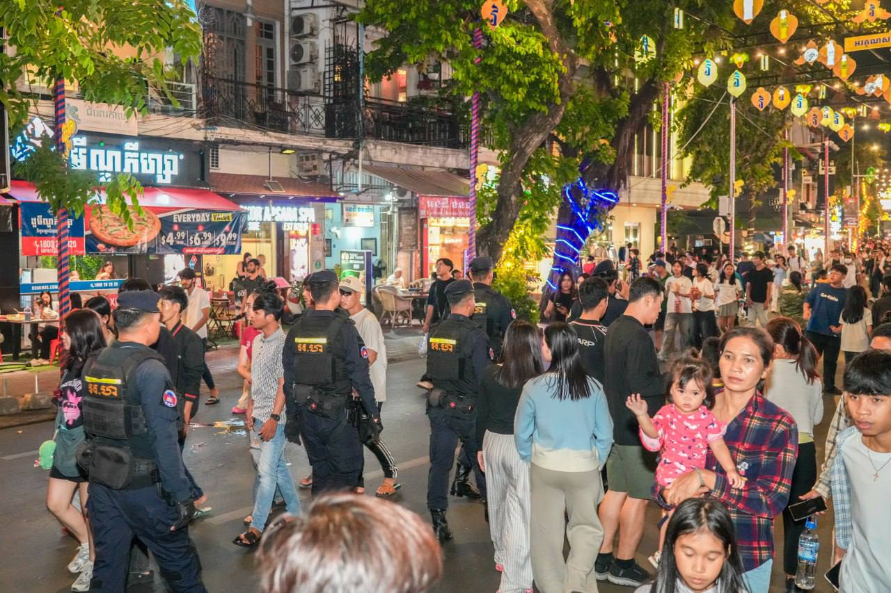 (ភ្នំពេញ)៖ កម្លាំងកងរាជអាវុធហត្ថរាជធានីភ្នំពេញ ចូលរួមល្បាត ការពារសន្តិសុខ សុវត្ថិភាព រក្សាសណ្ដាប់ធ្នាប់ និងសង្គ្រោះបន្ទាន់ ជូនបងប្អូនប្រជាពលរដ្ឋ ធ្វើដំណើរកំសាន្ត នៅតាមដងផ្លូវថ្មើរជើង (Walk Street) នៅថ្ងៃទី២៩-៣០ ខែវិច្ឆកា ឆ្នាំ២០២៥។