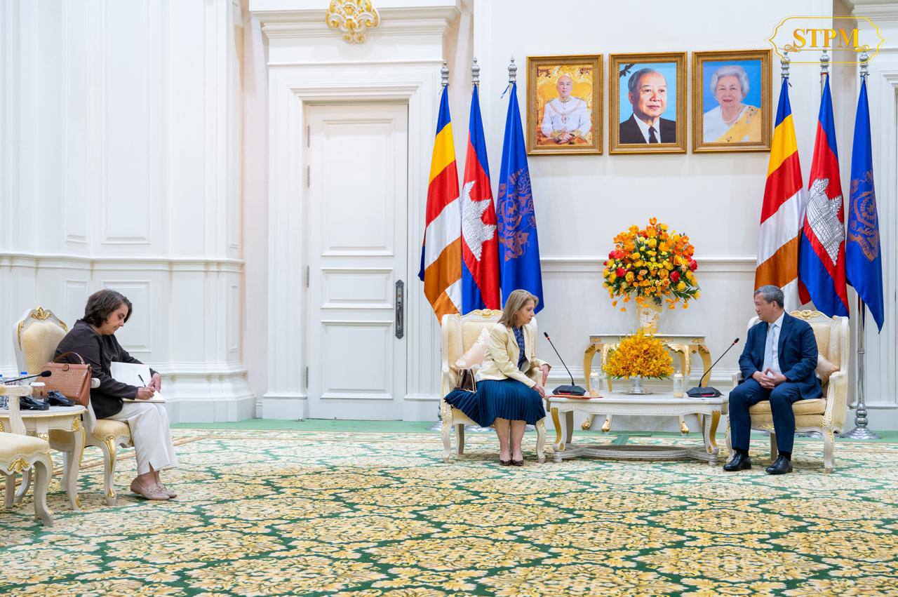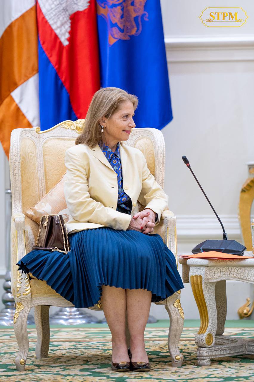 Receiving a courtesy call and having a discussion with Her Excellency Vivian Loss Sanmartin, Ambassador Extraordinary and Plenipotentiary of the Federative Republic of Brazil to the Kingdom of Cambodia, at Peace Palace.