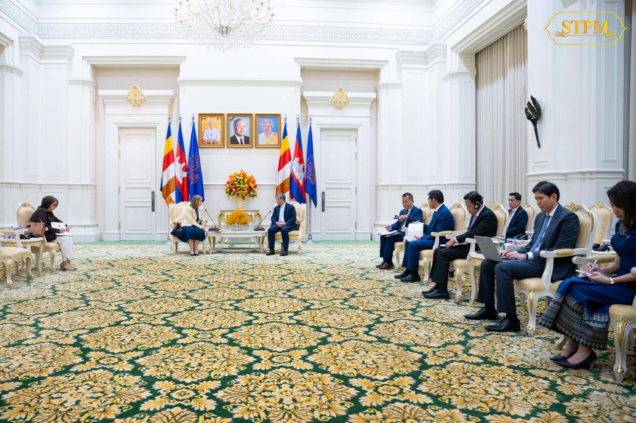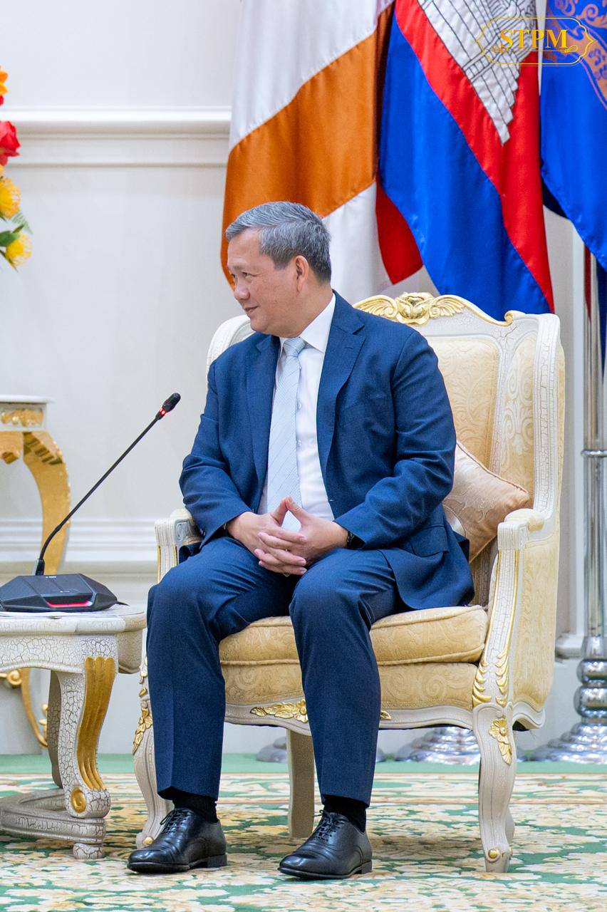 សម្តេចមហាបវរធិបតី ហ៊ុន ម៉ាណែត នាយករដ្ឋមន្ត្រីនៃព្រះរាជាណាចក្រកម្ពុជា ជួបជាមួយ លោកជំទាវ Vivian Loss Sanmartin ឯកអគ្គរដ្ឋទូតវិសាមញ្ញ និងពេញសមត្ថភាព នៃសាធារណរដ្ឋសហព័ន្ធប្រេស៊ីល ប្រចាំព្រះរាជាណាចក្រកម្ពុជា ក្នុងជំនួបសម្តែងការគួរសម និងពិភាក្សាការងារ នៅវិមានសន្តិភាព។