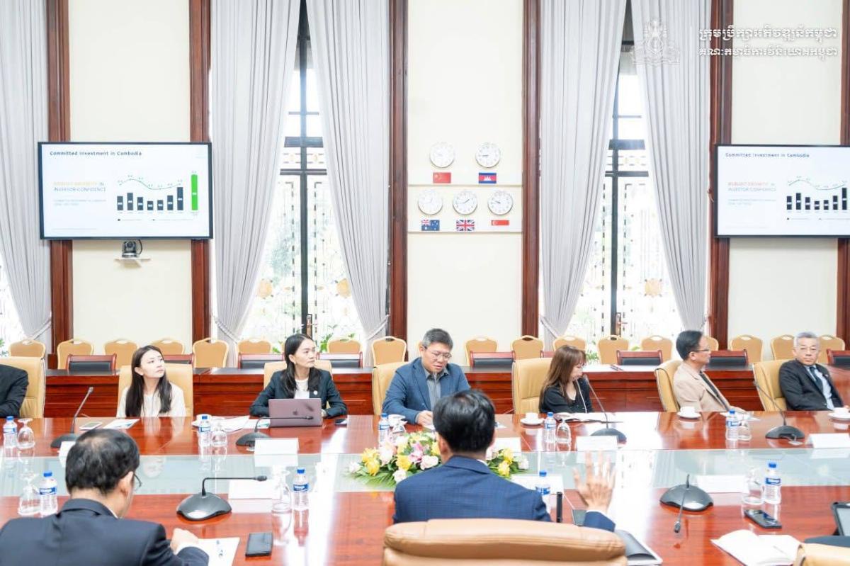 ក្នុងកិច្ចពិភាក្សានេះ ឯកឧត្តម បានជម្រាបជូនគណៈប្រតិភូអំពីបរិស្ថានវិនិយោគជារួមនៅកម្ពុជា និងវឌ្ឍនភាពសំខាន់ៗមួយ ចំនួនដែលកម្ពុជាខិតខំសម្រេចបានដូចជា ស្ថិរភាពម៉ាក្រូសេដ្ឋកិច្ចកម្ពុជា, កំណើននៃរំហូរវិនិយោគបរទេសផ្ទាល់មកកម្ពុជា, ការរីក ចម្រើននៃការអភិវឌ្ឍតំបន់សេដ្ឋកិច្ចពិសេសជាដើម។ បន្ថែមលើនេះ ឯកឧត្តមអគ្គលេខាធិការរង ក៏បានលើកឡើង ពីរបបលើកទឹកចិត្ត វិនិយោគ ដែលពោរពេញដោយភាពទាក់ទាញ, ពន្ធដារ, កត្តាគន្លឹះនៃការទាក់ទាញវិនិយោគមកកម្ពុជា, កិច្ចសម្រួល និងការថែទាំ វិនិយោគ ព្រមទាំងវិធានការគាំទ្រផ្សេងៗ ដែលរាជរដ្ឋាភិបាលបានបន្តដាក់ចេញសម្រាប់លើកកម្ពស់បរិយាកាសវិនិយោគ និងធុរកិច្ច នៅកម្ពុជាឱ្យកាន់តែមានភាពប្រកួតប្រជែងខ្ពស់។