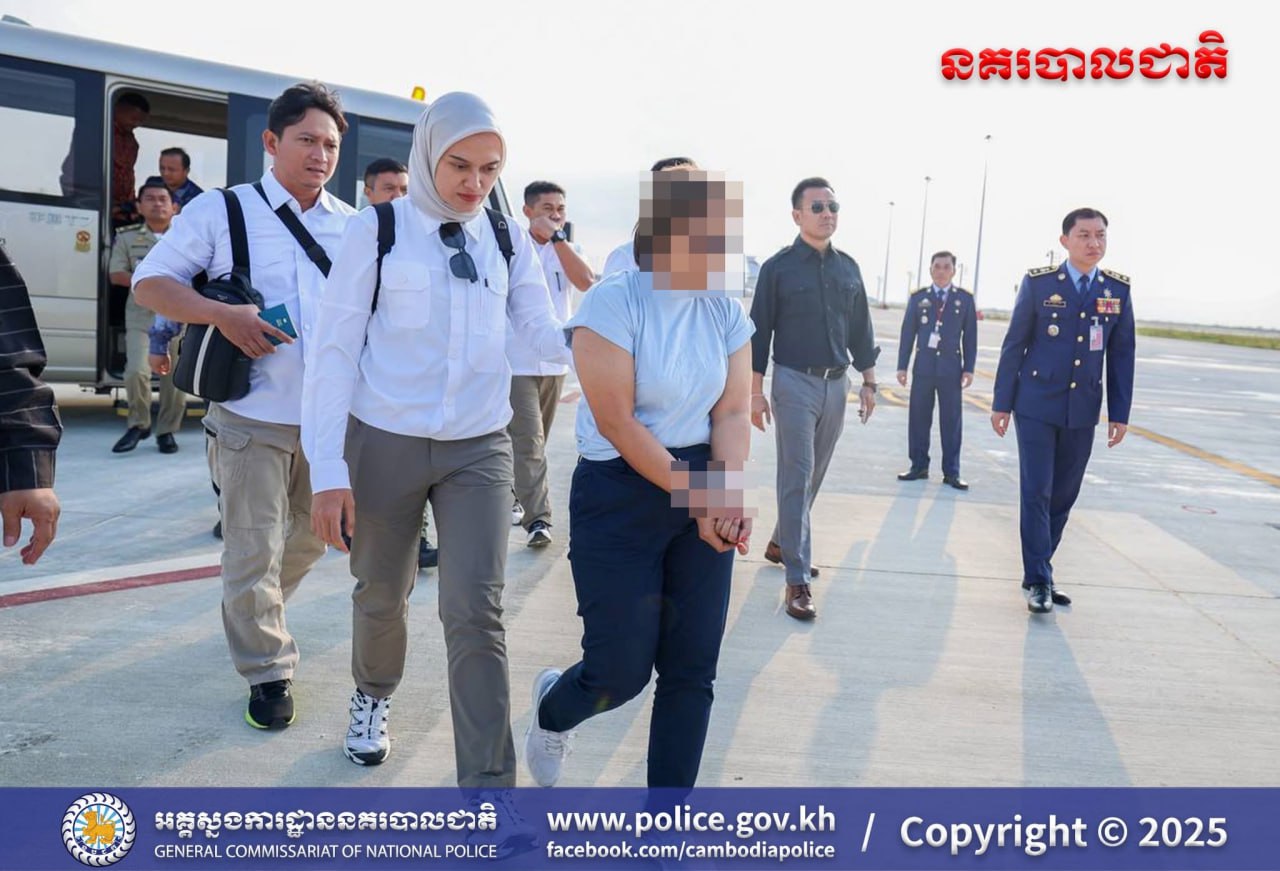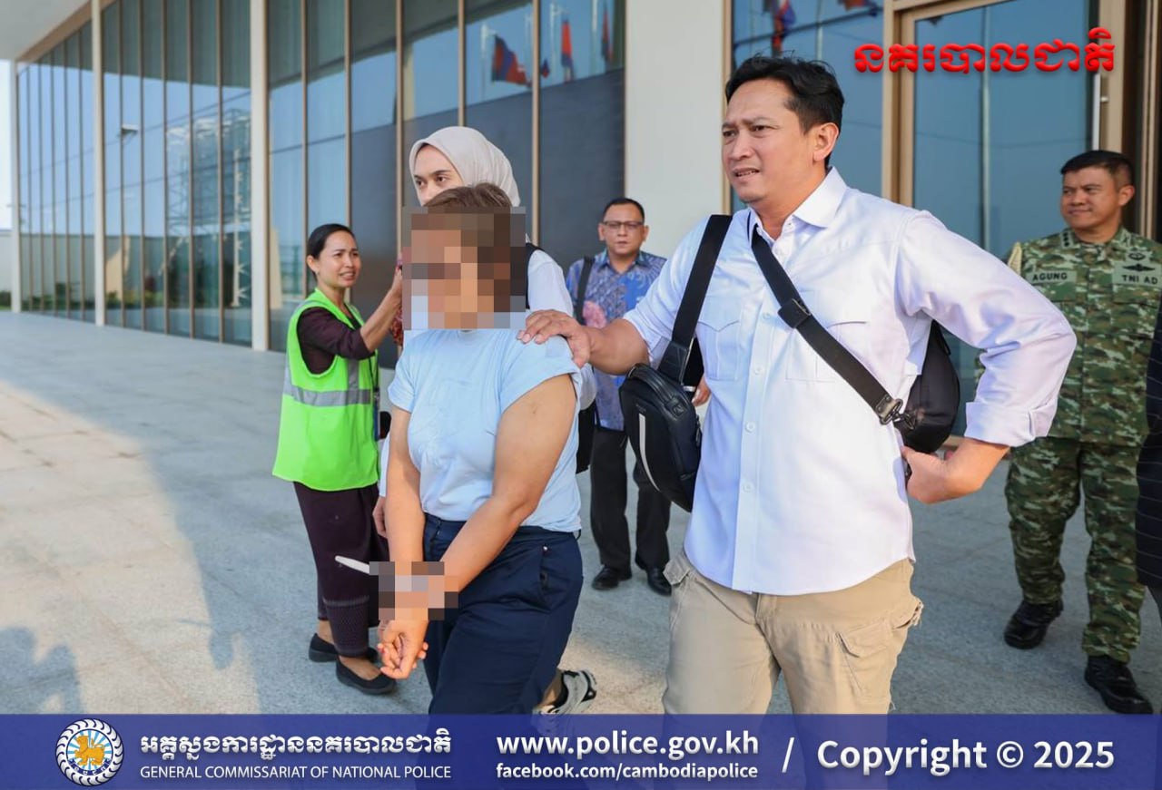 (ព្រះសីហនុ)៖ កម្លាំងជំនាញនៃអគ្គស្នងការនគរបាជាតិ សហការជាមួយស្នងការដ្ឋាននគរបាលខេត្តព្រះសីហនុ តាមការផ្តល់ព័ត៌មានពីនគរបាលឥណ្ឌូណេស៊ី បានឈានដល់ការឃាត់ខ្លួន និងបញ្ជូនមុខសញ្ញានិវេទន៍ក្រហមរបស់នគរបាលអន្តរជាតិ ពាក់ព័ន្ធបទល្មើសជួញដូរមនុស្ស និងគ្រឿងញៀន គឺស្ត្រីជនជាតិឥណ្ឌូណេស៊ីម្នាក់ ទៅកាន់ប្រទេសដើមវិញ កាលពីថ្ងៃទី០២ ខែធ្នូ ឆ្នាំ២០២៥។