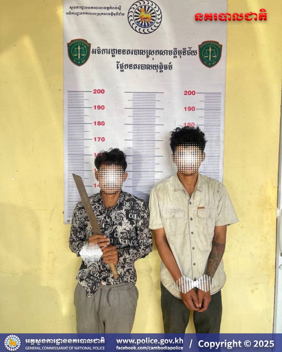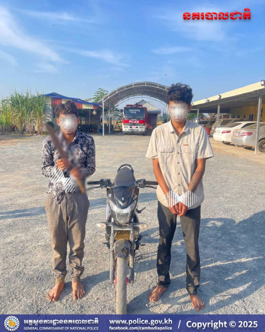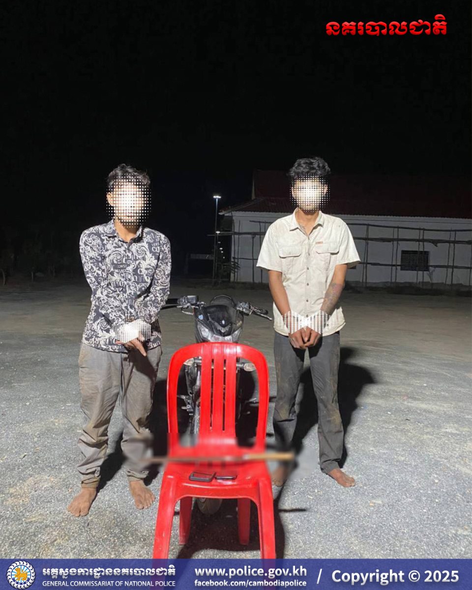 អធិការដ្ឋាននគរបាលស្រុកសាមគ្គីមុនីជ័យ ឃាត់ខ្លួនយុវជន ២នាក់ ជិះម៉ូតូកាន់ដាវពេលយប់