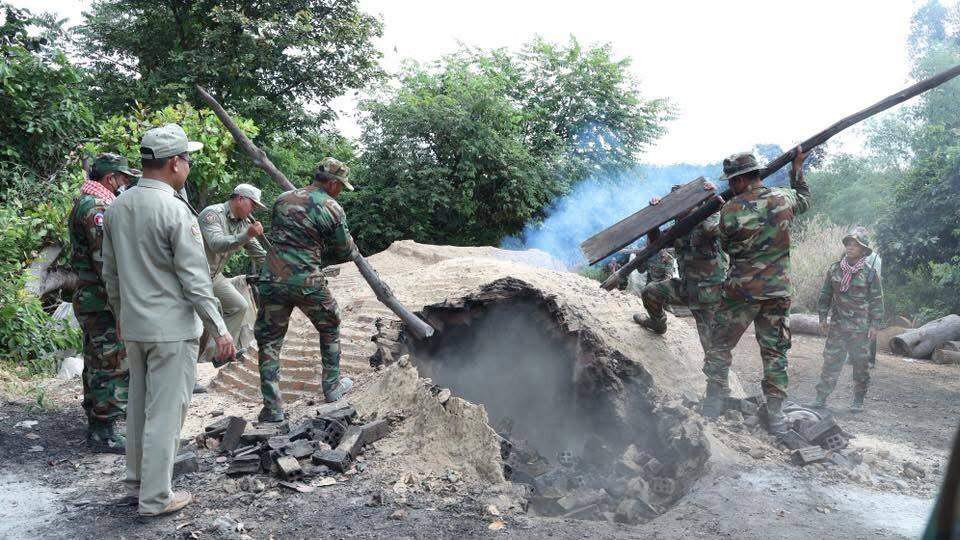 អាជ្ញាធរ និងកងកម្លាំងចម្រុះ វាយកំទេច ឡធ្យូងខុសច្បាប់ ៥កន្លែង នៅស្រុកសណ្ដាន់ ខេត្តកំពង់ធំ