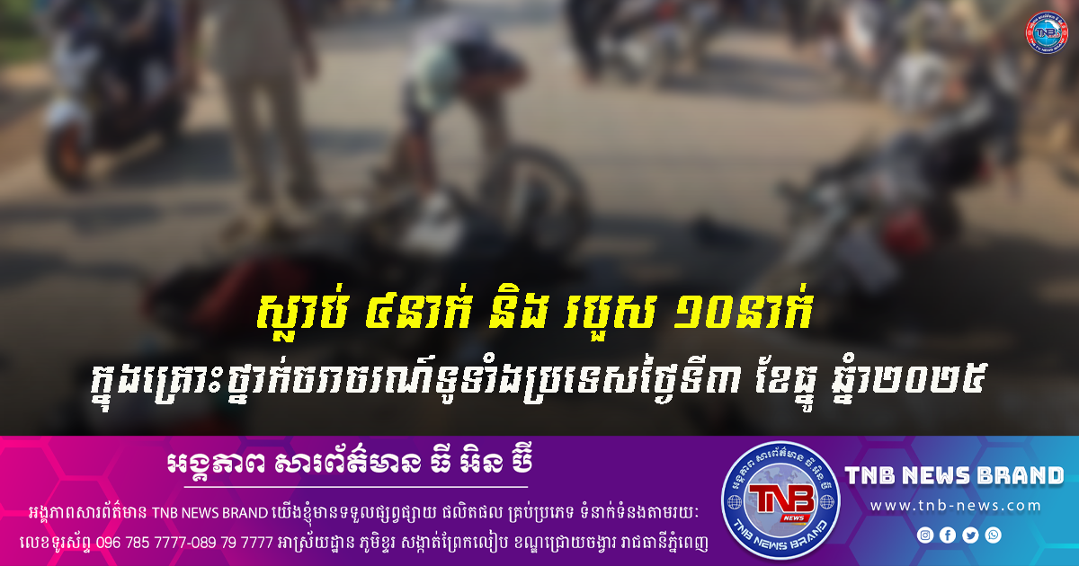 ស្លាប់៤នាក់ និងរបួស១០នាក់ ក្នុងគ្រោះថ្នាក់ចរាចរណ៍ទូទាំងប្រទេសថ្ងៃទី៣ ខែធ្នូ ឆ្នំា២០២៥