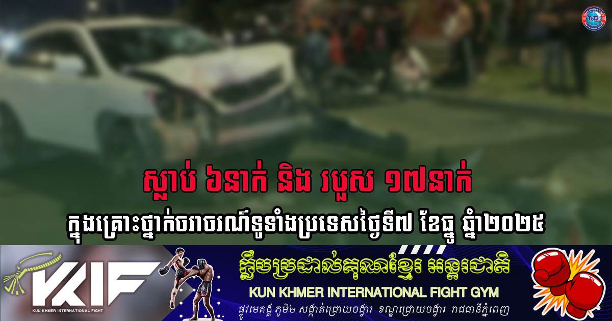 ស្លាប់៦នាក់ និងរបួស១៧នាក់ ក្នុងគ្រោះថ្នាក់ចរាចរណ៍ទូទាំងប្រទេសថ្ងៃទី៧ ខែធ្នូ ឆ្នំា២០២៥