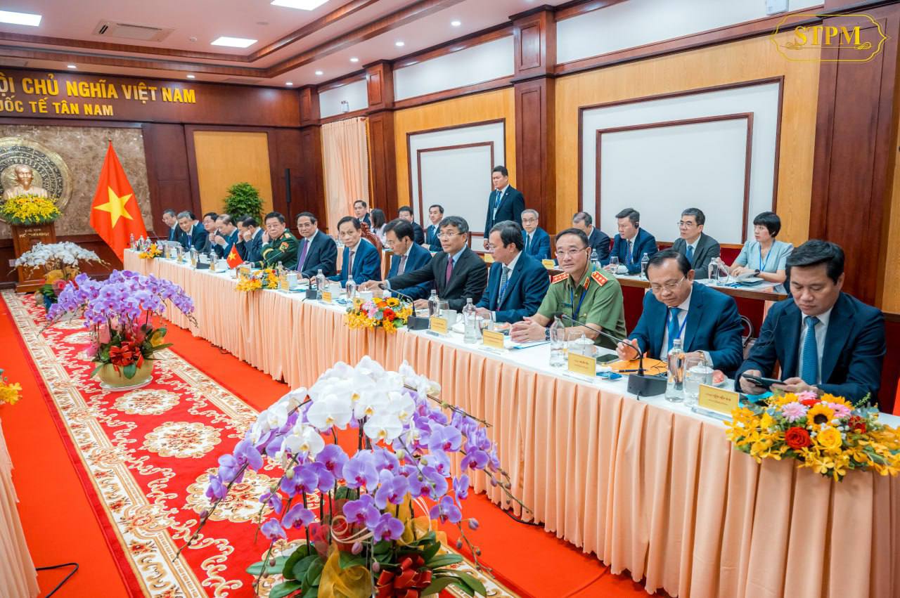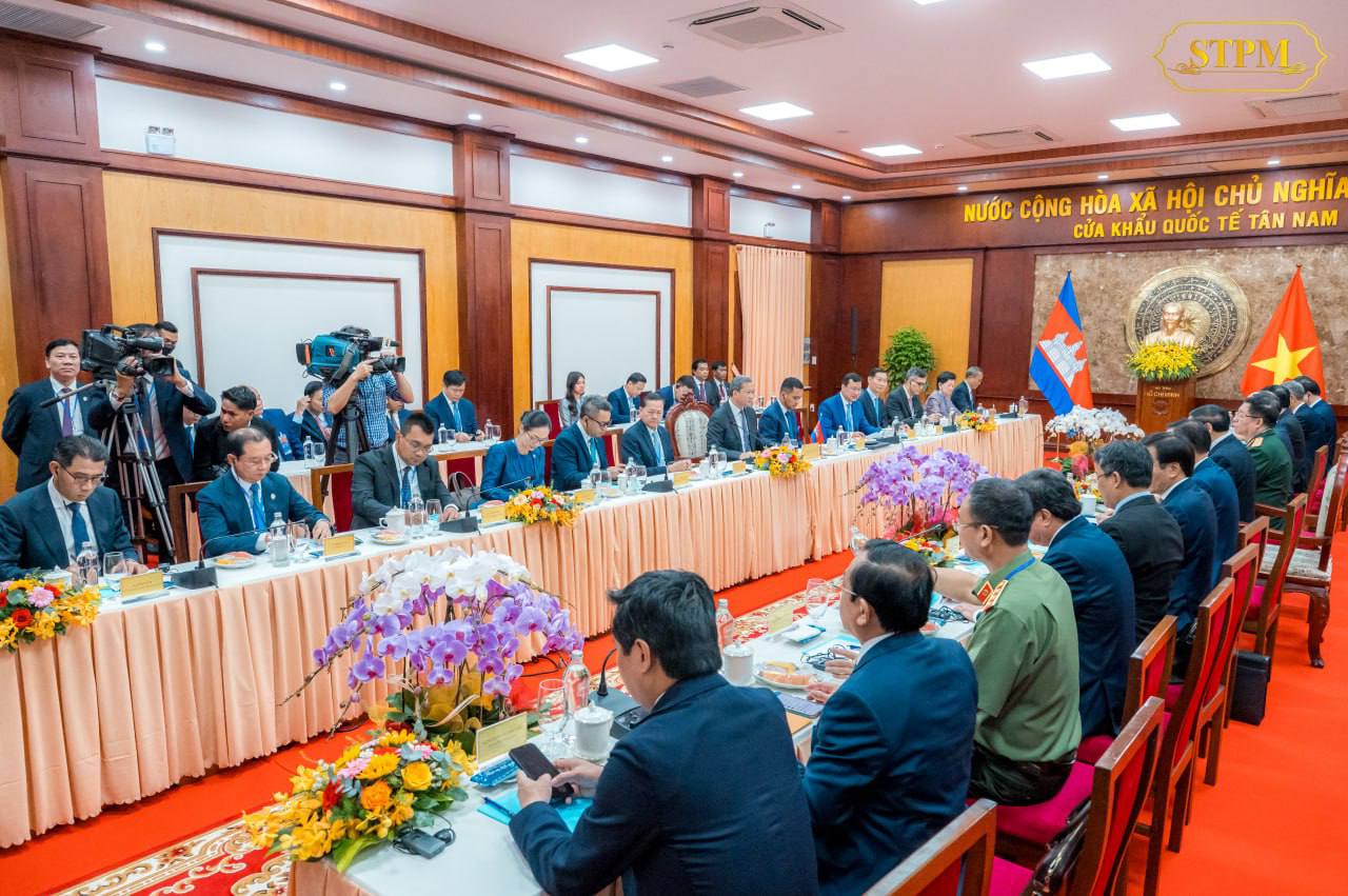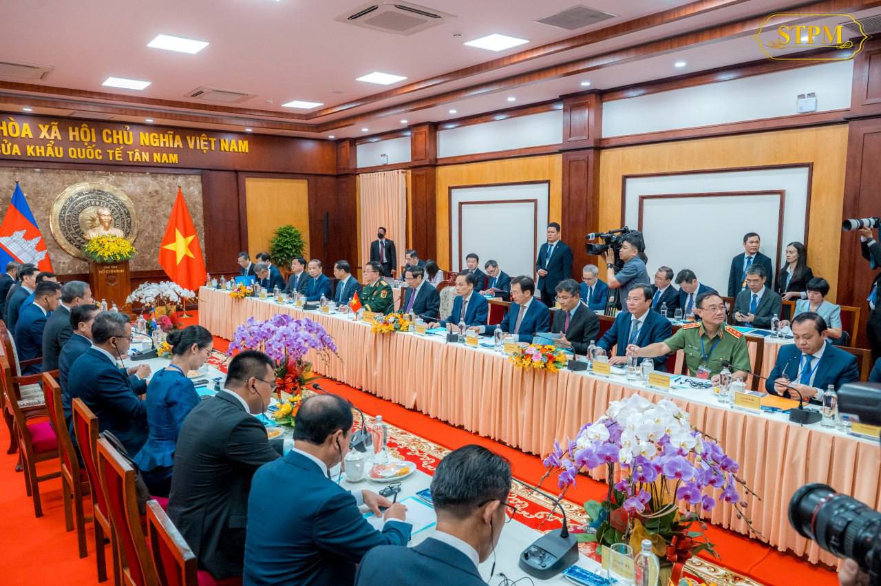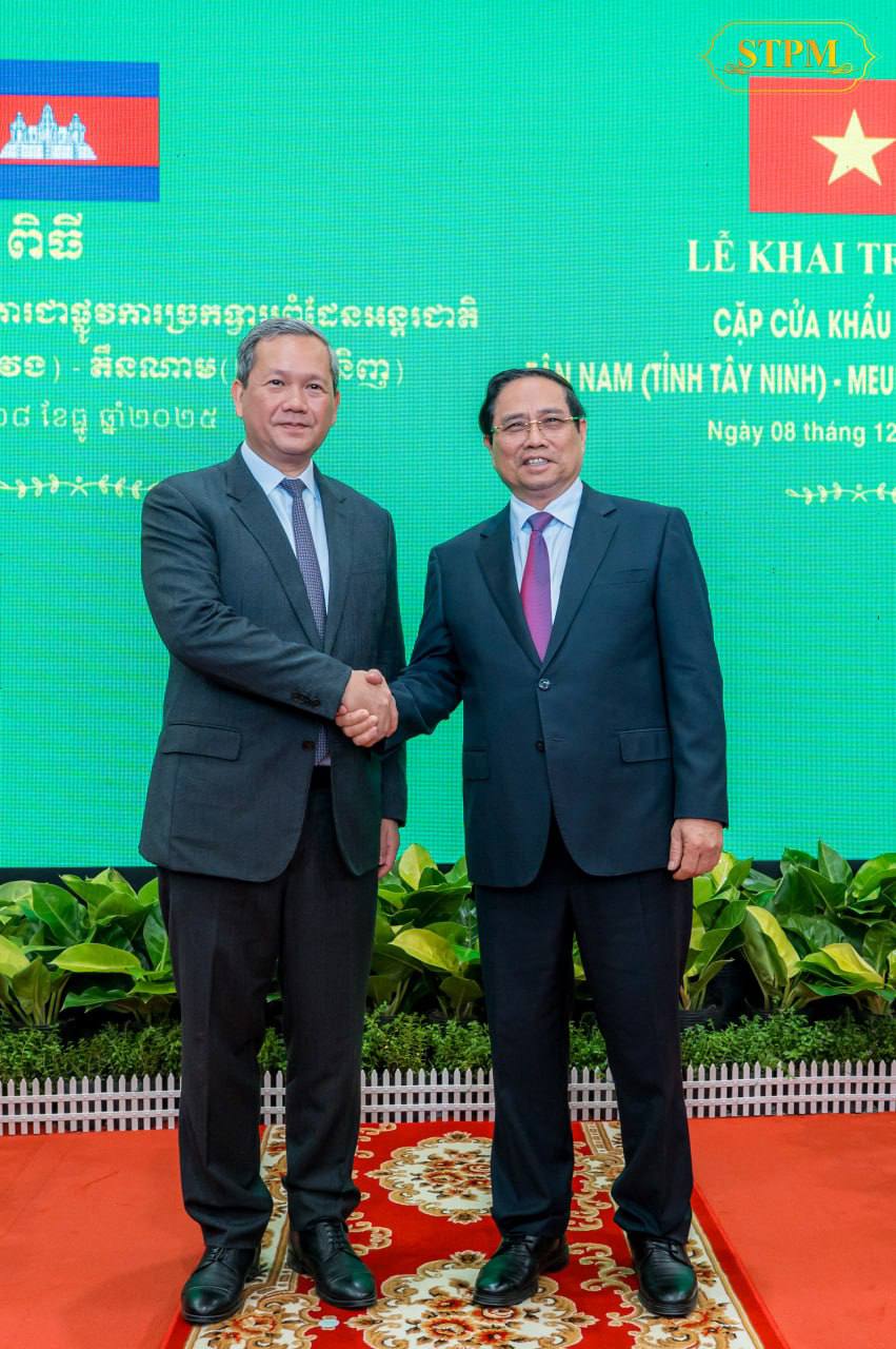 សម្ដេចធិបតី ហ៊ុន ម៉ាណែត នាយករដ្ឋមន្ត្រីកម្ពុជា អញ្ជើញជួបទ្វេភាគី និងពិភាក្សាការងារ ជាមួយ ឯកឧត្តម ផាម មិញ ជិញ (Pham Minh Chinh) នាយករដ្ឋមន្រ្តីនៃសាធារណរដ្ឋសង្គមនិយមវៀតណាម ក្នុងឱកាសចូលរួមពិធីសម្ភោធដាក់ឱ្យប្រើប្រាស់ជាផ្លូវការច្រកទ្វារព្រំដែនម៉ឺនជ័យ នៃខេត្តព្រៃវែង – តឹនណាម នៃខេត្តតៃនិញ នាព្រឹកថ្ងៃចន្ទ ទី៨ ខែធ្នូ ឆ្នាំ២០២៥។