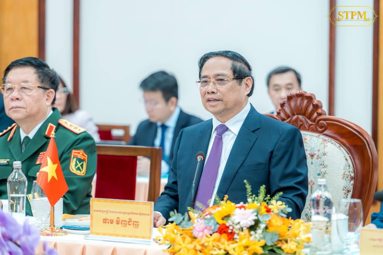 សម្ដេចធិបតី ហ៊ុន ម៉ាណែត នាយករដ្ឋមន្ត្រីកម្ពុជា អញ្ជើញជួបទ្វេភាគី និងពិភាក្សាការងារ ជាមួយ ឯកឧត្តម ផាម មិញ ជិញ (Pham Minh Chinh) នាយករដ្ឋមន្រ្តីនៃសាធារណរដ្ឋសង្គមនិយមវៀតណាម ក្នុងឱកាសចូលរួមពិធីសម្ភោធដាក់ឱ្យប្រើប្រាស់ជាផ្លូវការច្រកទ្វារព្រំដែនម៉ឺនជ័យ នៃខេត្តព្រៃវែង – តឹនណាម នៃខេត្តតៃនិញ