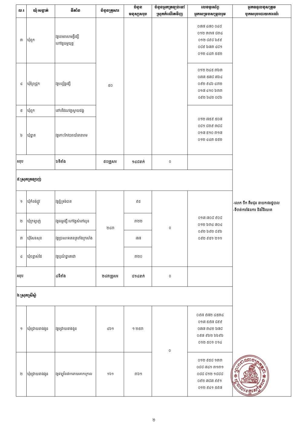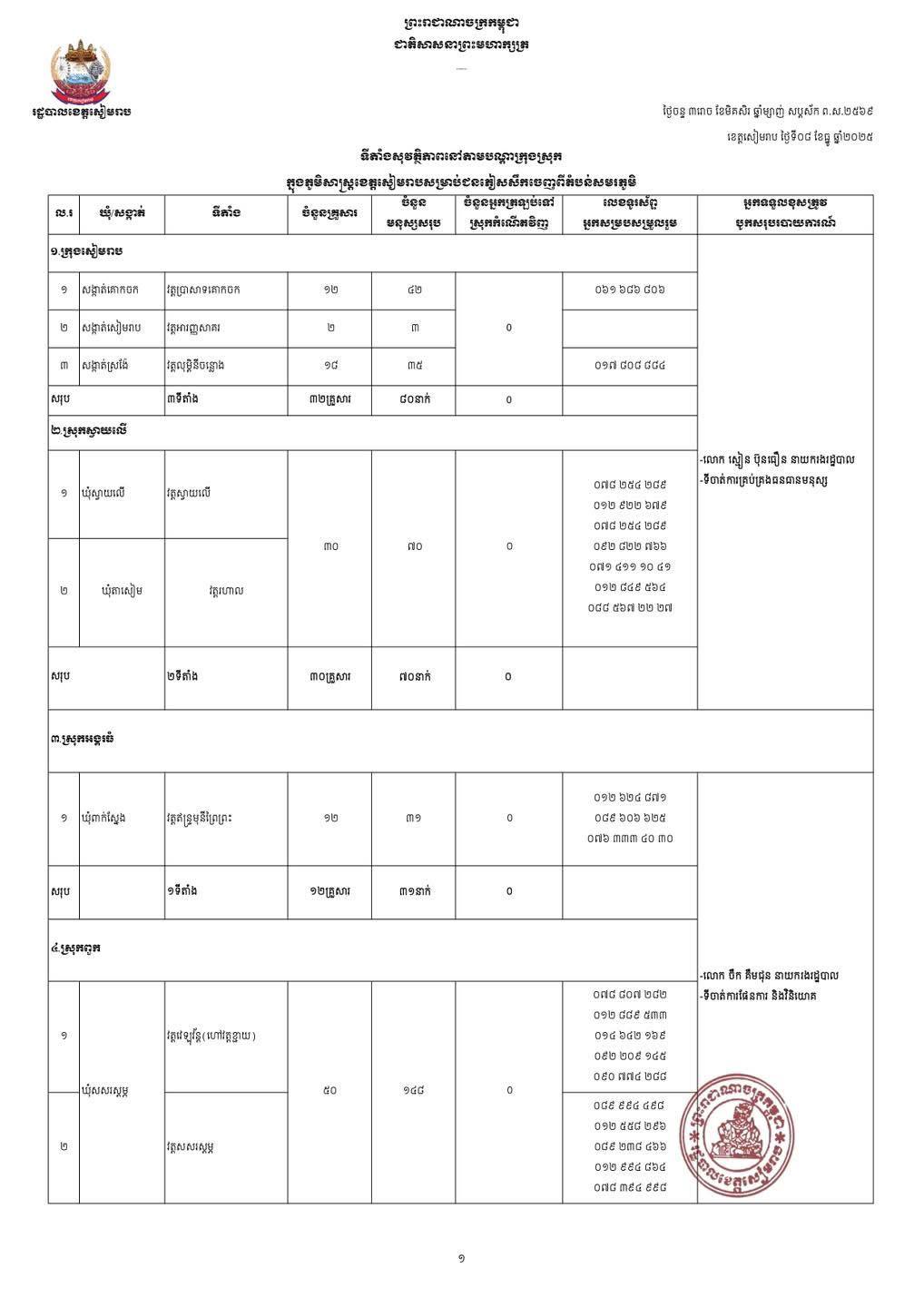 រដ្ឋបាលខេត្តសូមជូនទីតាំង និងលេខទូរស័ព្ទរបស់ក្រុមការងារដែលកំពុងសម្របសម្រួលទីតាំងសុវត្ថិភាពនៅក្នុងភូមិសាស្ត្រខេត្តសៀមរាបជូនបងប្អូនជនភៀសសឹកដែលជម្លៀសពីសមរភូមិមុខ