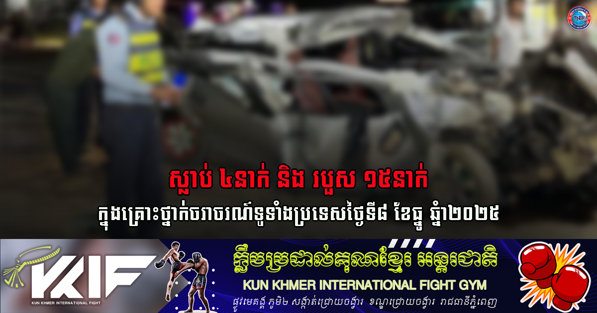 ស្លាប់៤នាក់ និងរបួស១៥នាក់ ក្នុងគ្រោះថ្នាក់ចរាចរណ៍ទូទាំងប្រទេសថ្ងៃទី៨ ខែធ្នូ ឆ្នំា២០២៥