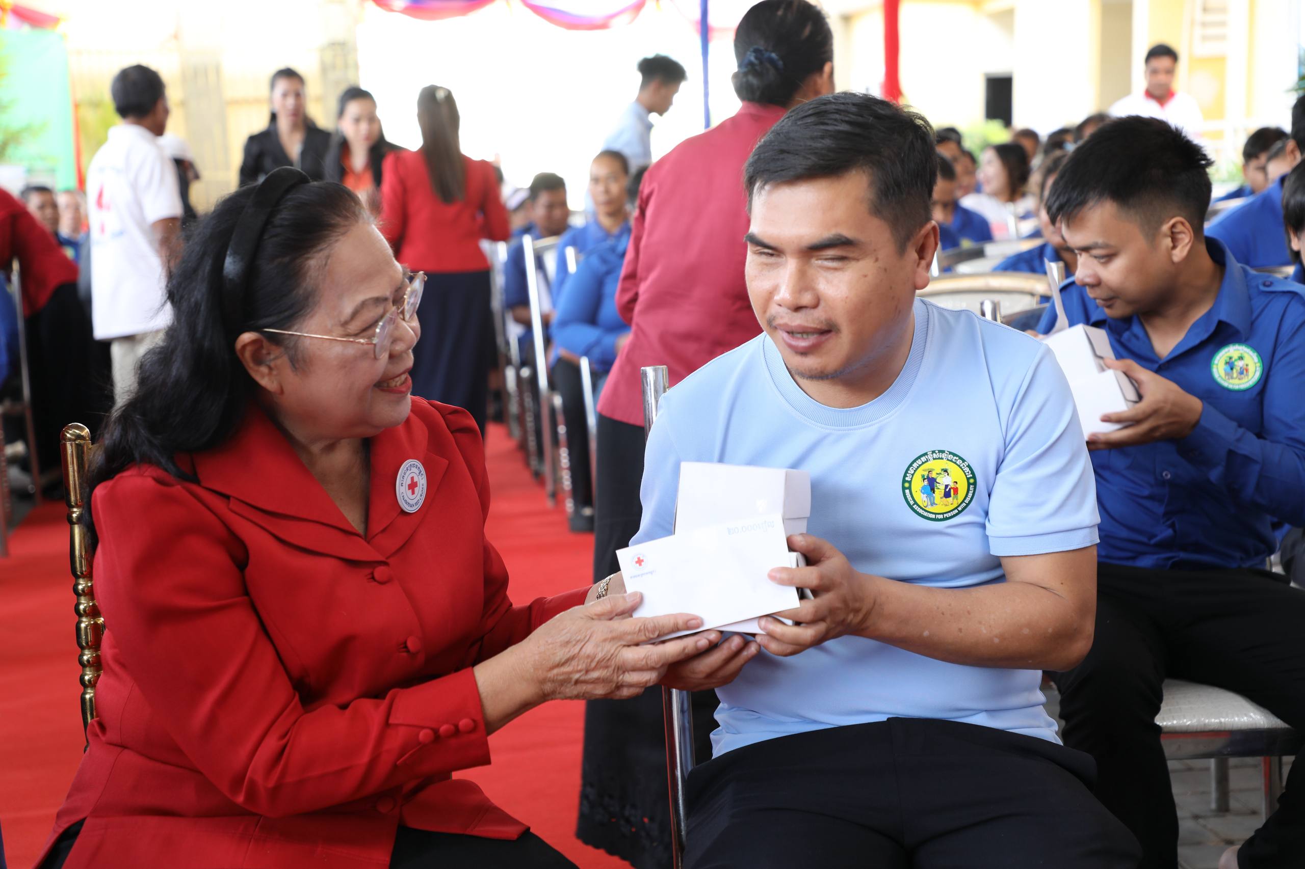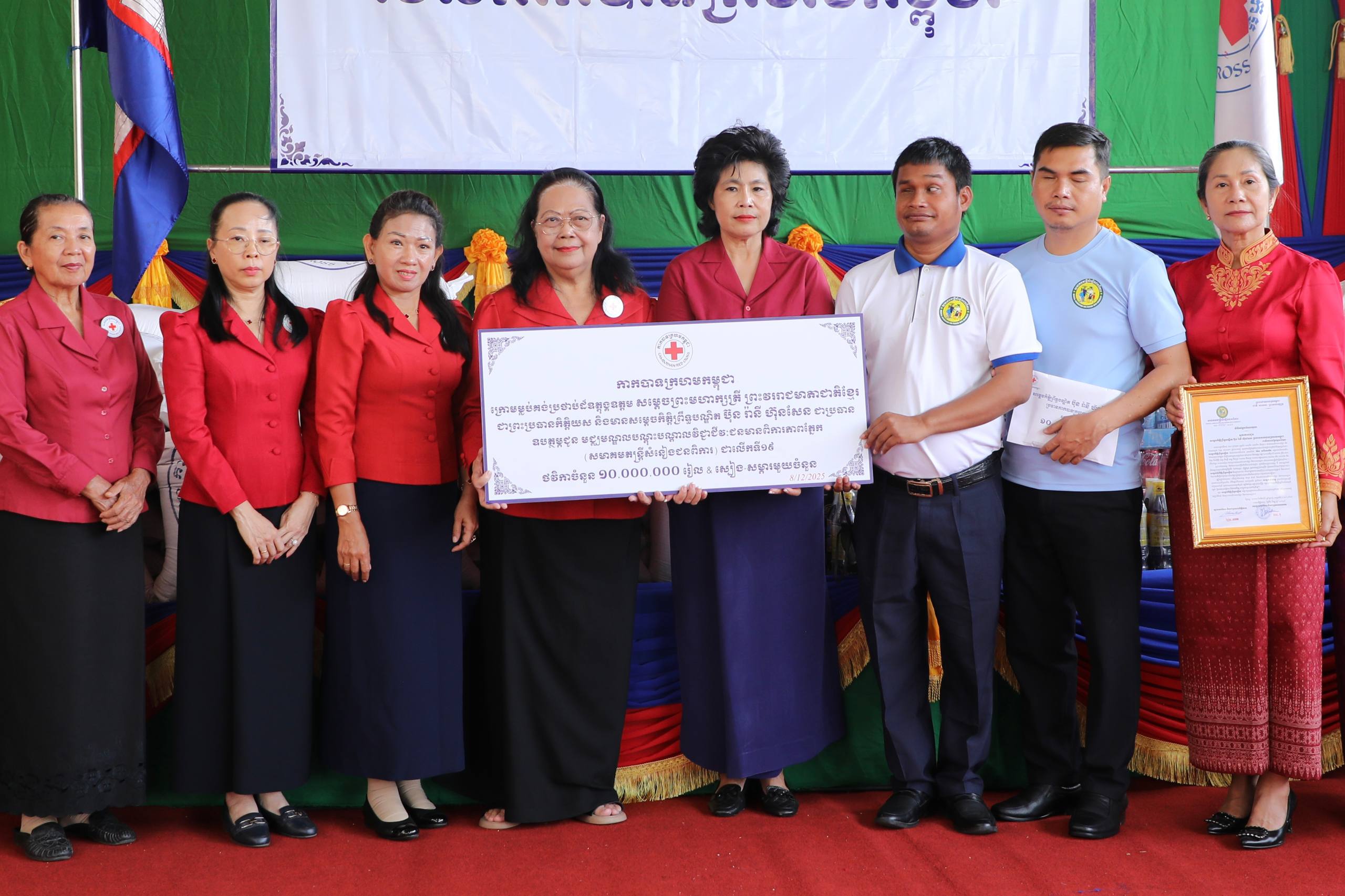 ជាក់ស្ដែងនៅថ្ងៃទី៨ ខែធ្នូ ឆ្នាំ២០២៥នេះ អ្នកម្ដាយមនុស្សធម៌ បានបន្ដចាត់លោកស្រី ម៉ែន នារីសោភ័គ អគ្គលេខាធិការរងទី១ កាកបាទក្រហមកម្ពុជា ចុះសំណេះសំណាលសួរសុខទុក្ខ និងផ្ដល់អំណោយមនុស្សធម៌ជាគ្រឿងឧបភោគ-បរិភោគ និងថវិកាជូនជនមានពិការភាពនៃមជ្ឈមណ្ឌលបណ្តុះបណ្តាលវិជ្ជាជីវៈជនពិការភ្នែក (សមាគមតន្ដ្រីសំនៀងជនពិការ) ដែលស្ថិតនៅភូមិជំរៅ សង្កាត់គោករកា ខណ្ឌព្រែកព្នៅ រាជធានីភ្នំពេញ។ការផ្ដល់អំណោយមនុស្សធម៌នេះ គឺជាលើកទី១៩ ហើយបើគិតចាប់ពីឆ្នាំ២០១៤មក ។