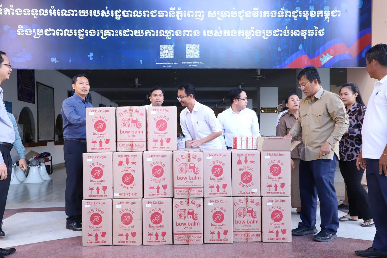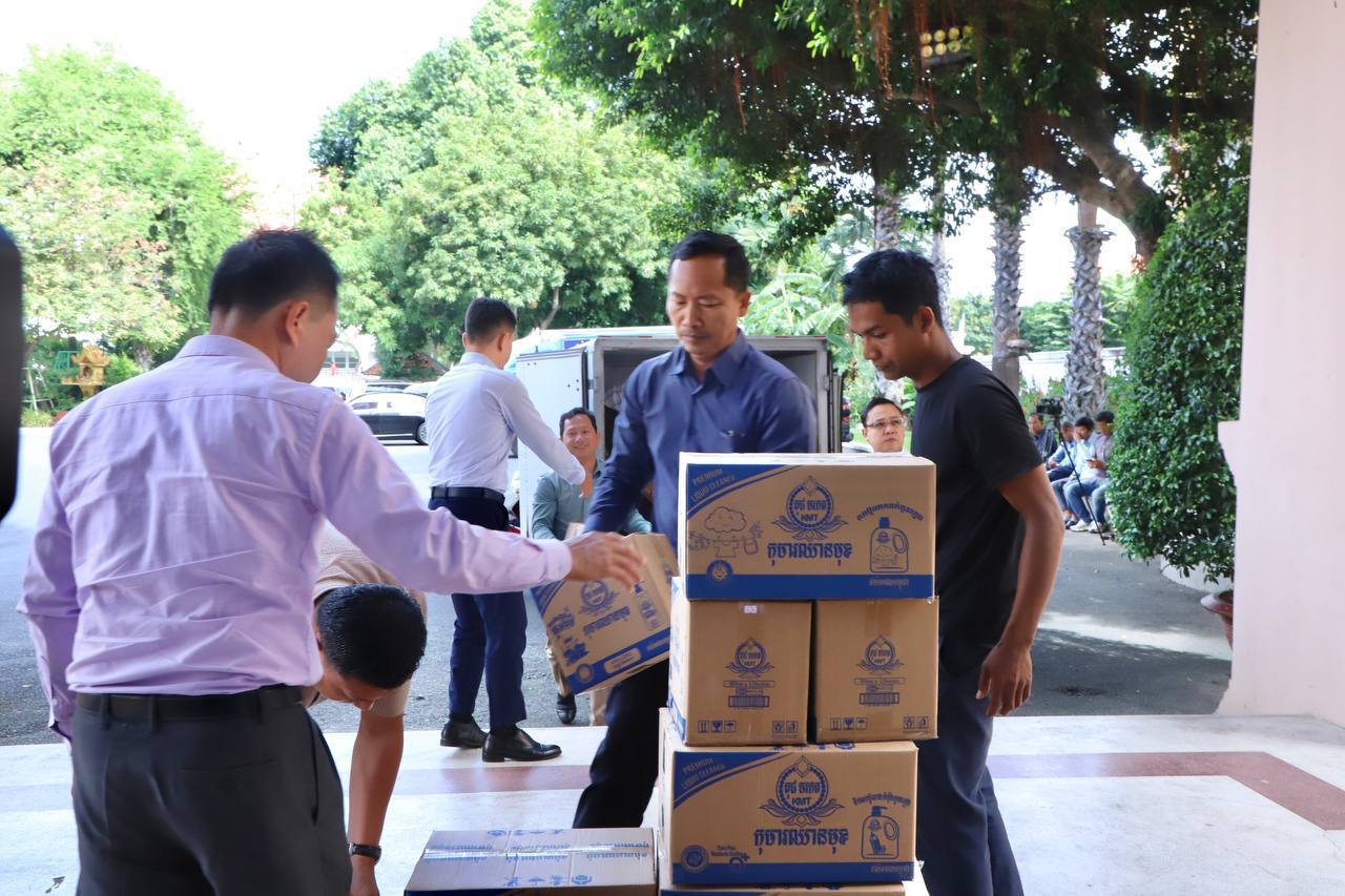 ភ្នំពេញ៖ ប្រេងកូឡាចំនួន១១០០០ដប ដែលជាអំណោយដ៏ថ្លៃថ្លារបស់សម្ដេចមហាបរវធិបតី ហ៊ុន ម៉ាណែត នាយករដ្ឋមន្ត្រីនិងលោកជំទាវបណ្ឌិត ពេជ ចន្ទមុន្នី ហ៊ុន ម៉ាណែត តាមរយៈតំណាងសមាគមគ្រូពេទ្យស្ម័គ្រចិត្ត យុវជនសម្តេចតេជោនាំយកមកប្រគល់ជូនរដ្ឋបាលរាជធានីភ្នំពេញ ដើម្បីបន្តយកទៅប្រគល់ជូនវីរៈកងទ័ព ដែលកំពុងឈរជើងប្រយុទ្ធនៅសមរភូមិមុខនិងប្រជាពលរដ្ឋជាជនភៀសសឹក ខណៈដែលក្រុមទាហានថៃវាយប្រហារឈ្លានពានចូលបូរណៈភាពទឹកដីកម្ពុជាធ្វើឱ្យមានការផ្ទុះសង្គ្រាមជាថ្មី ។