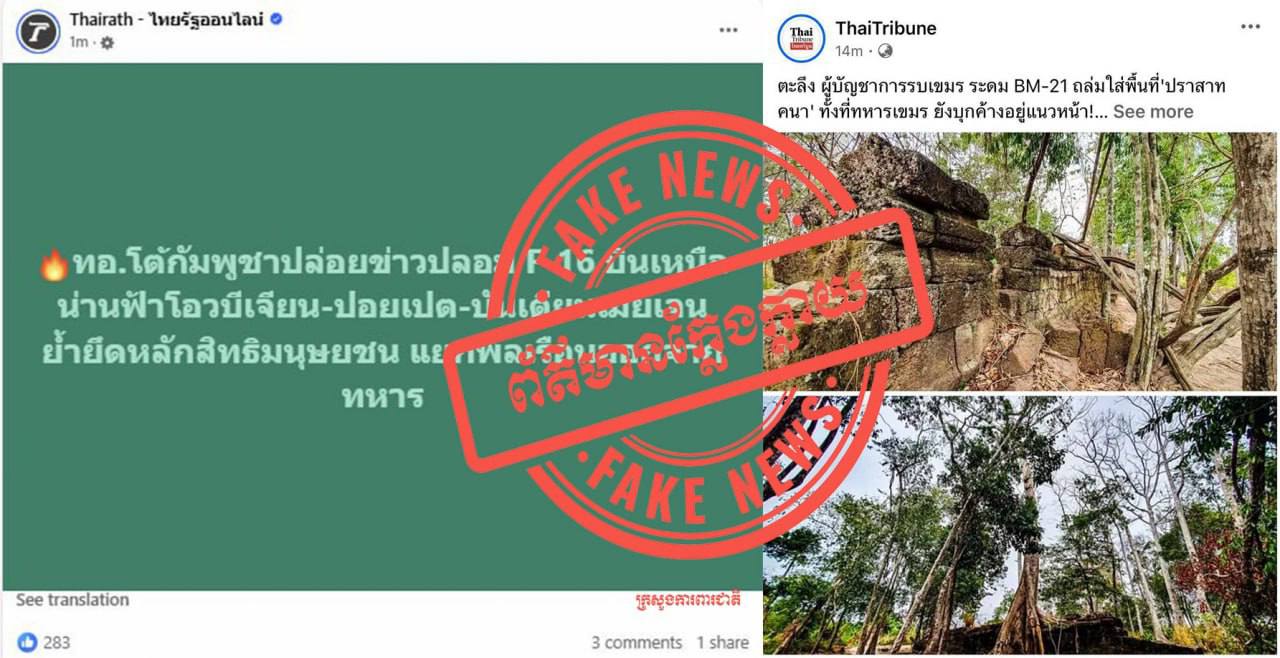 ក្រសួងការពារជាតិ៖ ការផ្សព្វផ្សាយរបស់ផេក Thairath និង ThaiTribune គឺជាព័ត៌មានក្លែងក្លាយ បំភ្លៃកាពិត។ Thairath និង ThaiTribune ជាសារព័ត៌មានគ្មានវិជ្ជាជីវៈ ផ្សព្វផ្សាយព័ត៌មានមិនពិត។