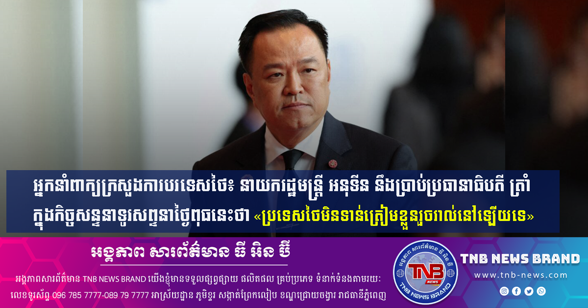 អ្នកនាំពាក្យក្រសួងការបរទេសថៃ៖ នាយករដ្ឋមន្រ្តី អនុទីន នឹងប្រាប់ប្រធានាធិបតី ត្រាំ ក្នុងកិច្ចសន្ទនាទូរសព្ទនាថ្ងៃពុធនេះថា «ប្រទេសថៃមិនទាន់ត្រៀមខ្លួនរួចរាល់នៅឡើយទេ»