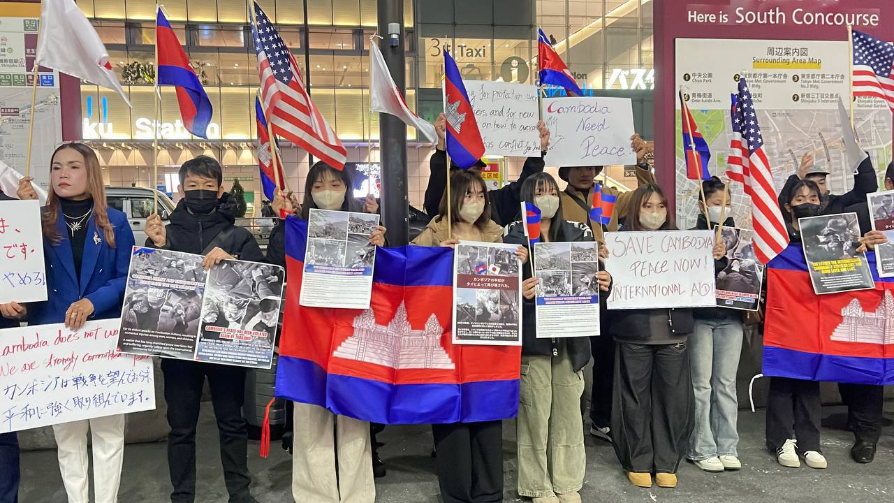 សហគមន៍ខ្មែរ ពលករ និងនិស្សិតខ្មែរ នៅប្រទេសជប៉ុនប្រមូលផ្តុំគ្នាសម្តែងមតិថ្កោលទោសថៃដែលបាញ់ប្រហារយ៉ាងឃោរឃៅទន្ទ្រានដែនអធិបតេយ្យភាពកម្ពុជា ៕