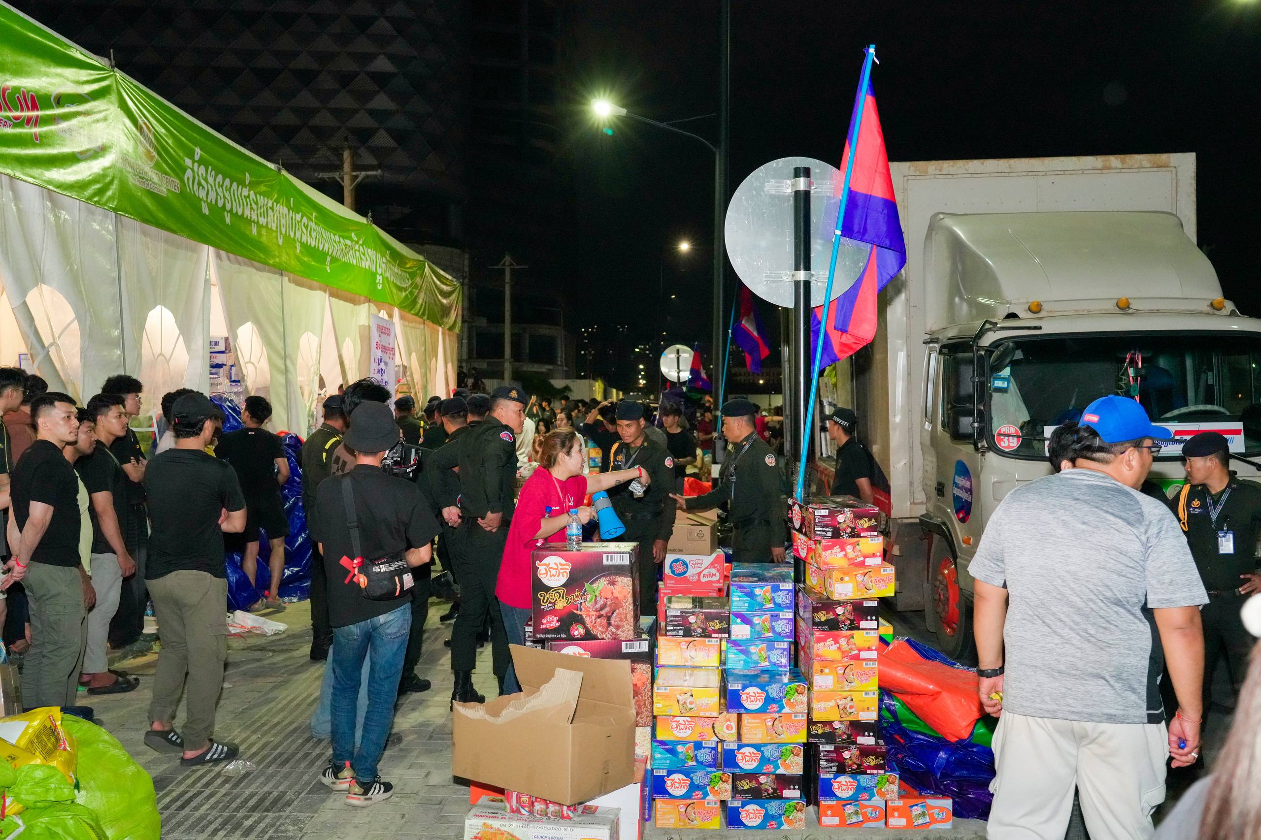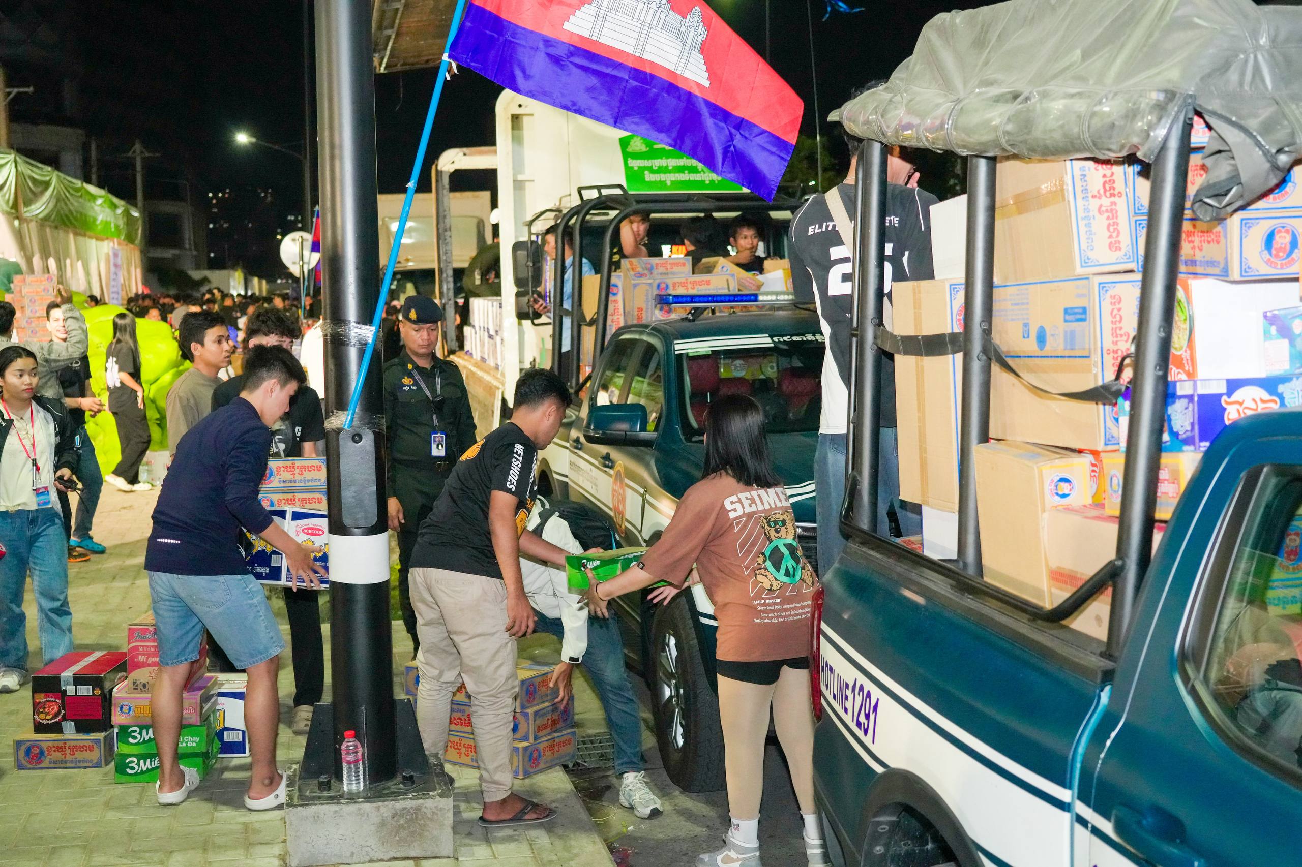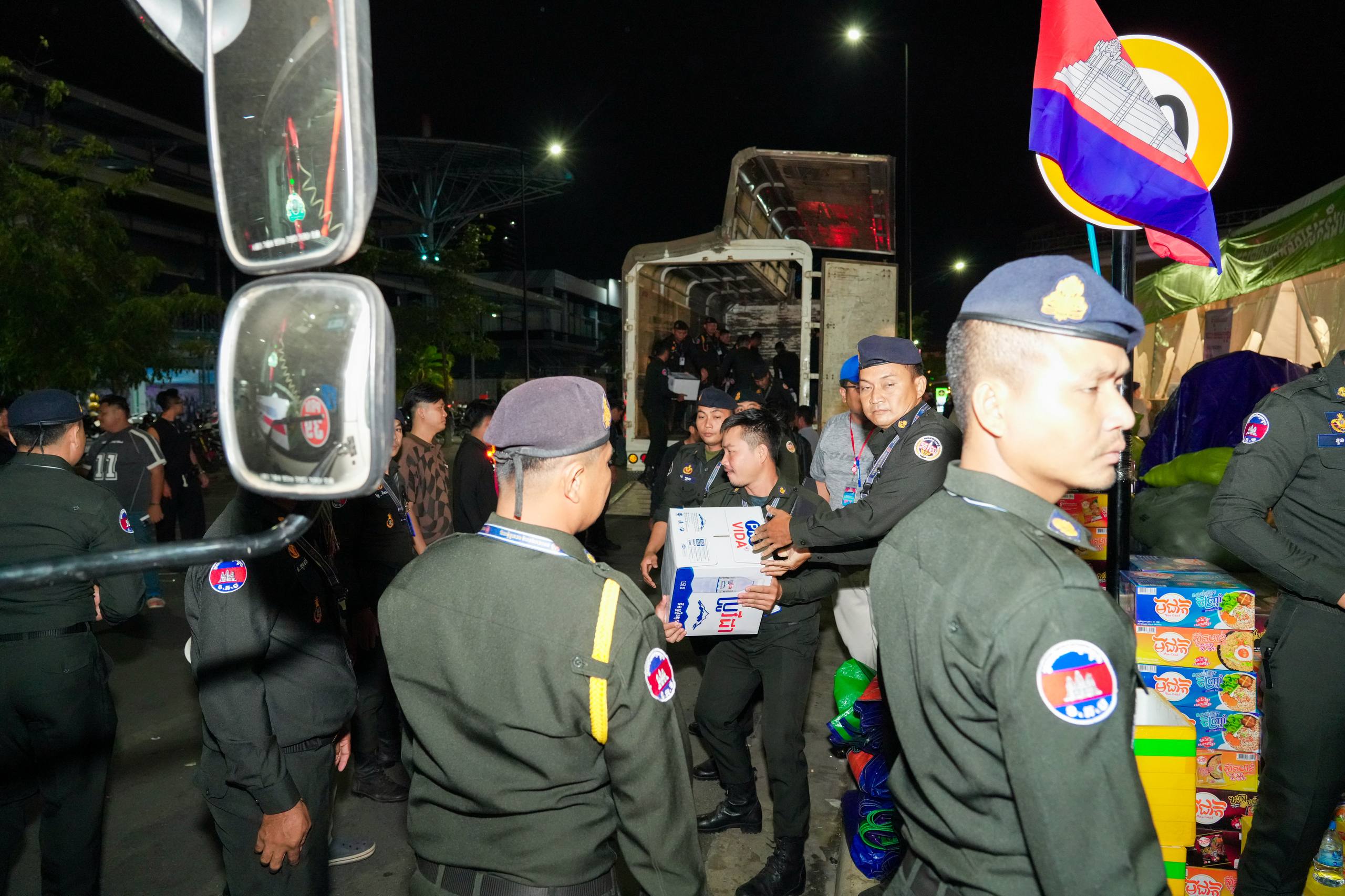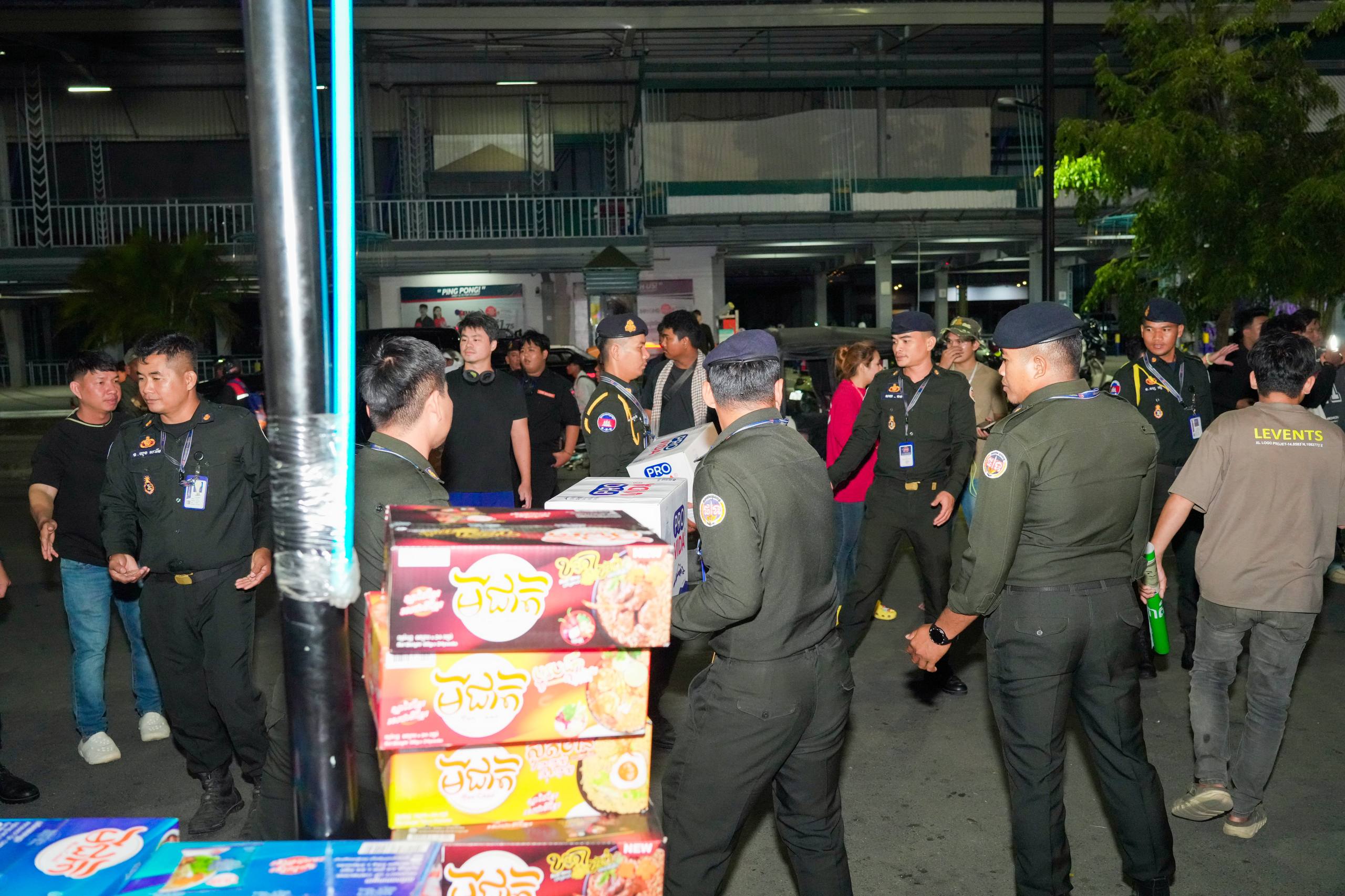 នៅយប់ថ្ងៃទី១០ ខែធ្នូ ឆ្នាំ២០២៥ កម្លាំងអាវុធហត្ថរាជធានីភ្នំពេញ បានចូលរួមជួយរៀបចំលើកជញ្ជូនស្បៀង និងសម្ភារៈចាំបាច់ផ្សេងៗ ចេញពីទីតាំងកន្លែងទទួលជំនួយសម្រាប់ជូនទៅបងប្អូនជនភៀសសឹក និងបងប្អូនកងទ័ពនៅជួរមុខ ត្រង់ចំណុច ហាង Eatmore បឹងកក់ រាជធានីភ្នំពេញ និងបានប្រើប្រាដ់រថយន្តជួយដឹកសំភារៈទៅឃ្លាំងស្តុករបស់ Eatmoreផងដែរ។