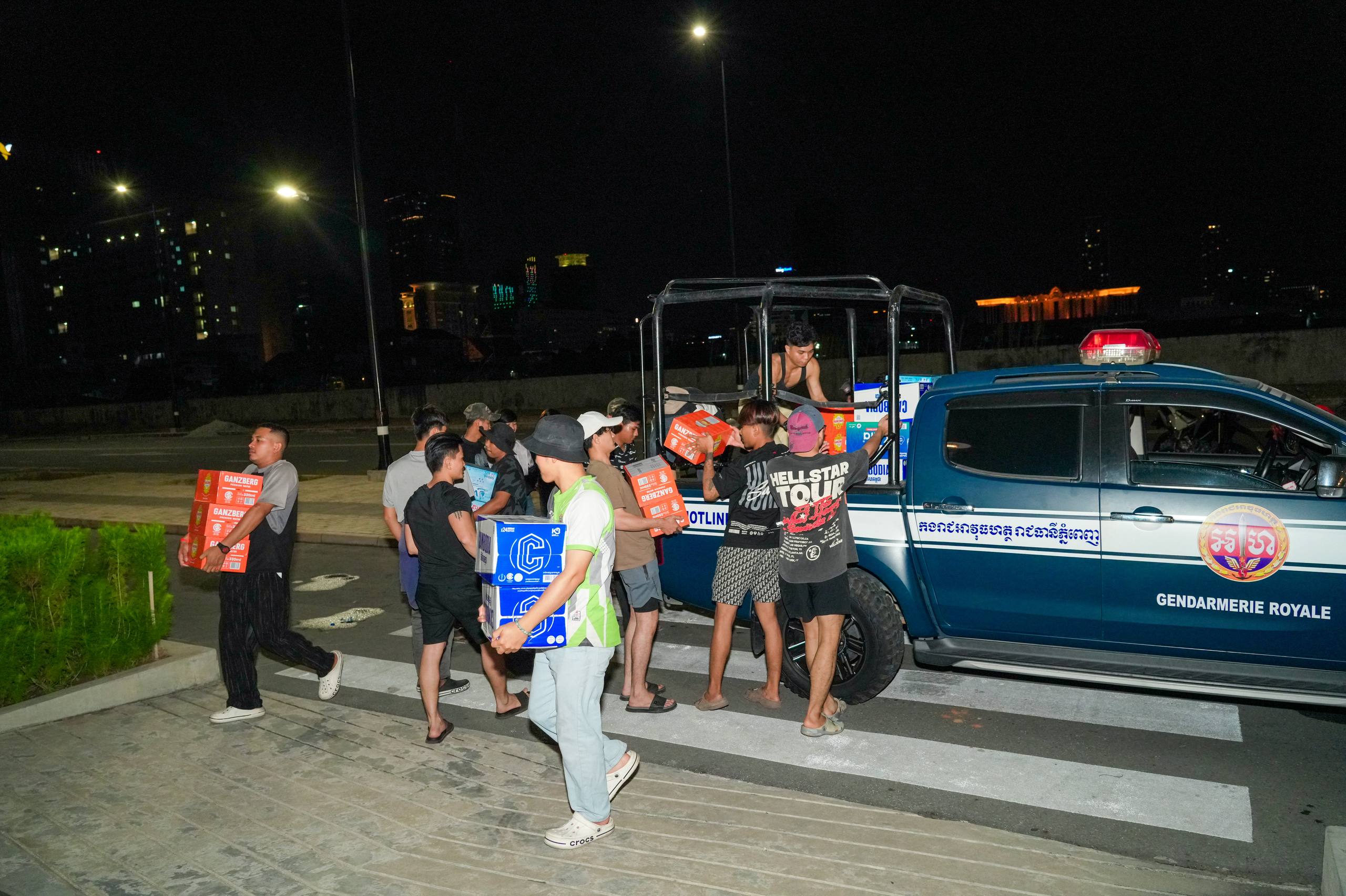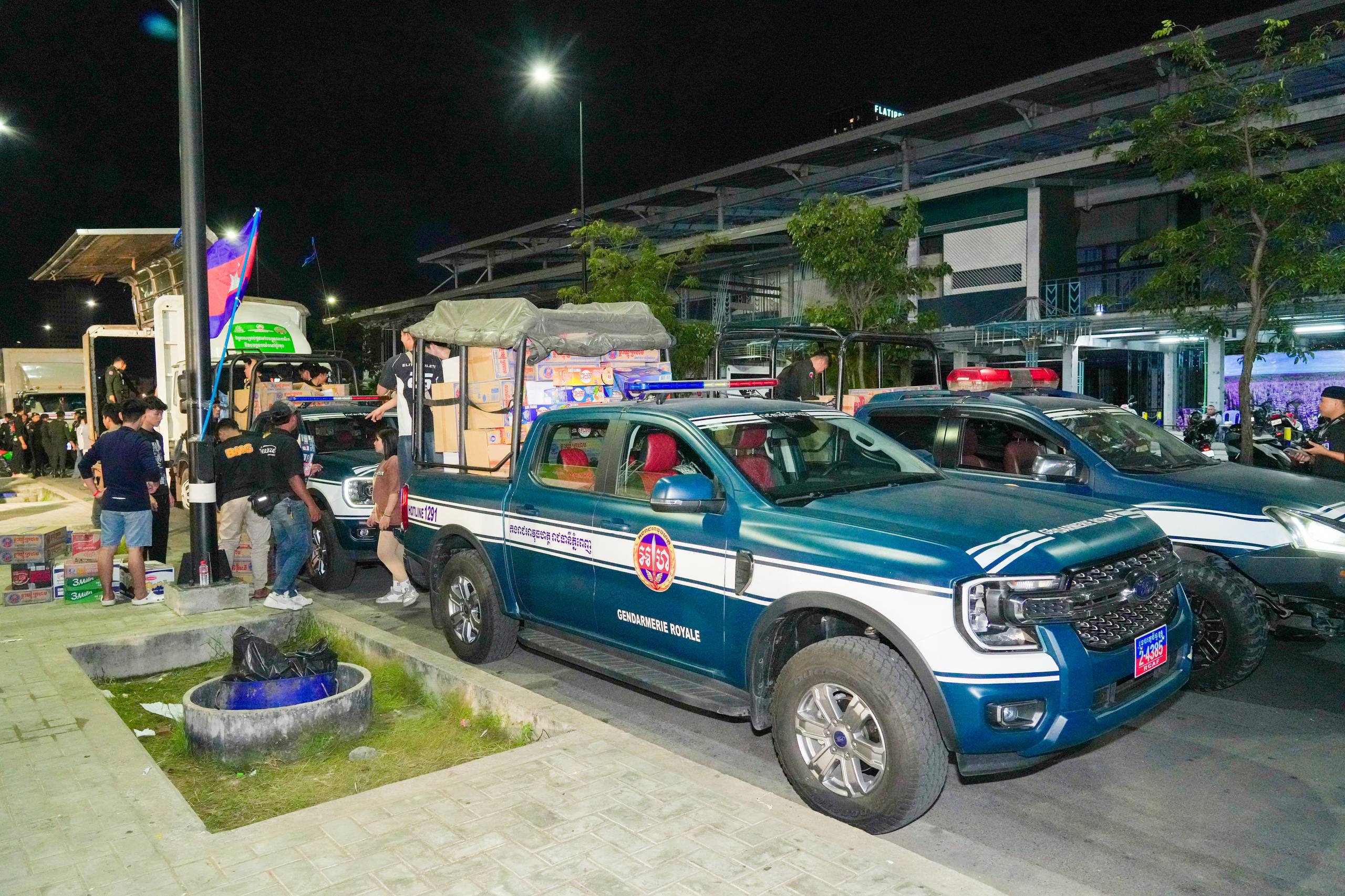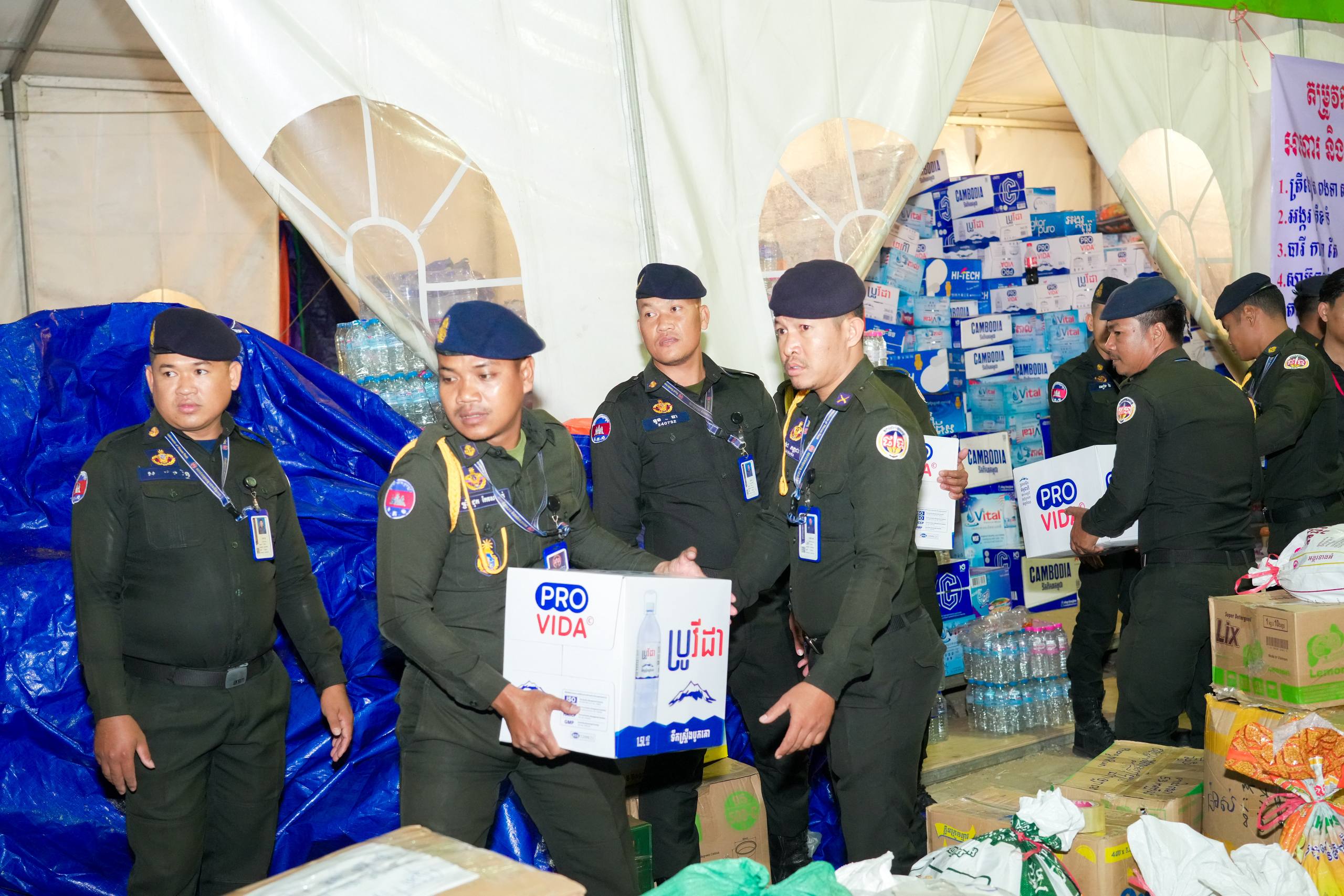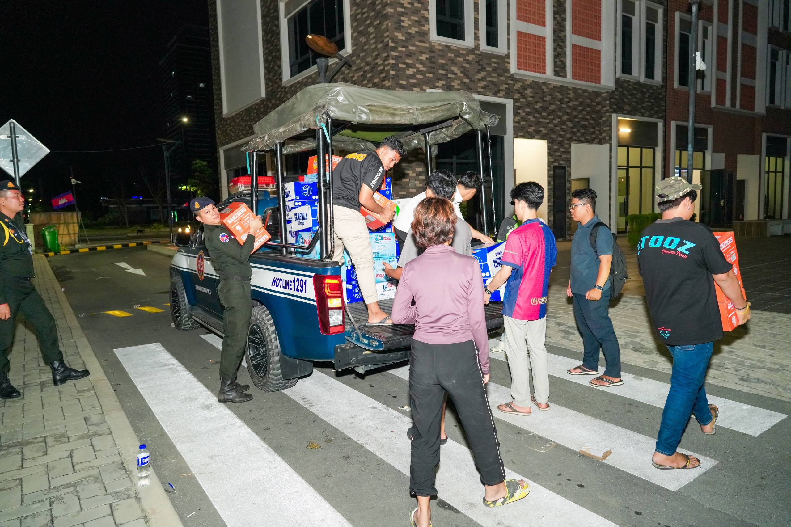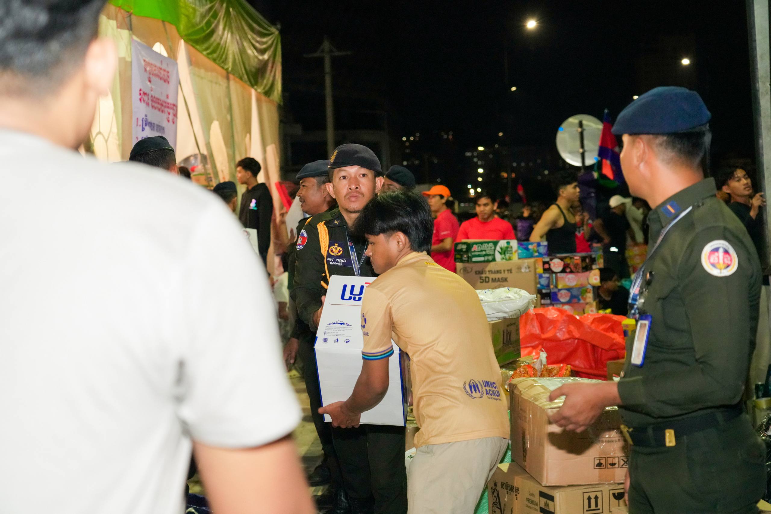 នៅយប់ថ្ងៃទី១០ ខែធ្នូ ឆ្នាំ២០២៥ កម្លាំងអាវុធហត្ថរាជធានីភ្នំពេញ បានចូលរួមជួយរៀបចំលើកជញ្ជូនស្បៀង និងសម្ភារៈចាំបាច់ផ្សេងៗ ចេញពីទីតាំងកន្លែងទទួលជំនួយសម្រាប់ជូនទៅបងប្អូនជនភៀសសឹក និងបងប្អូនកងទ័ពនៅជួរមុខ ត្រង់ចំណុច ហាង Eatmore បឹងកក់ រាជធានីភ្នំពេញ និងបានប្រើប្រាដ់រថយន្តជួយដឹកសំភារៈទៅឃ្លាំងស្តុករបស់ Eatmoreផងដែរ។