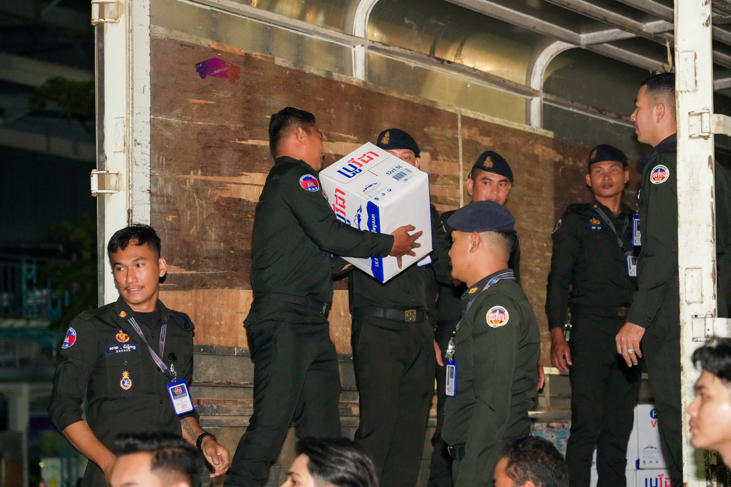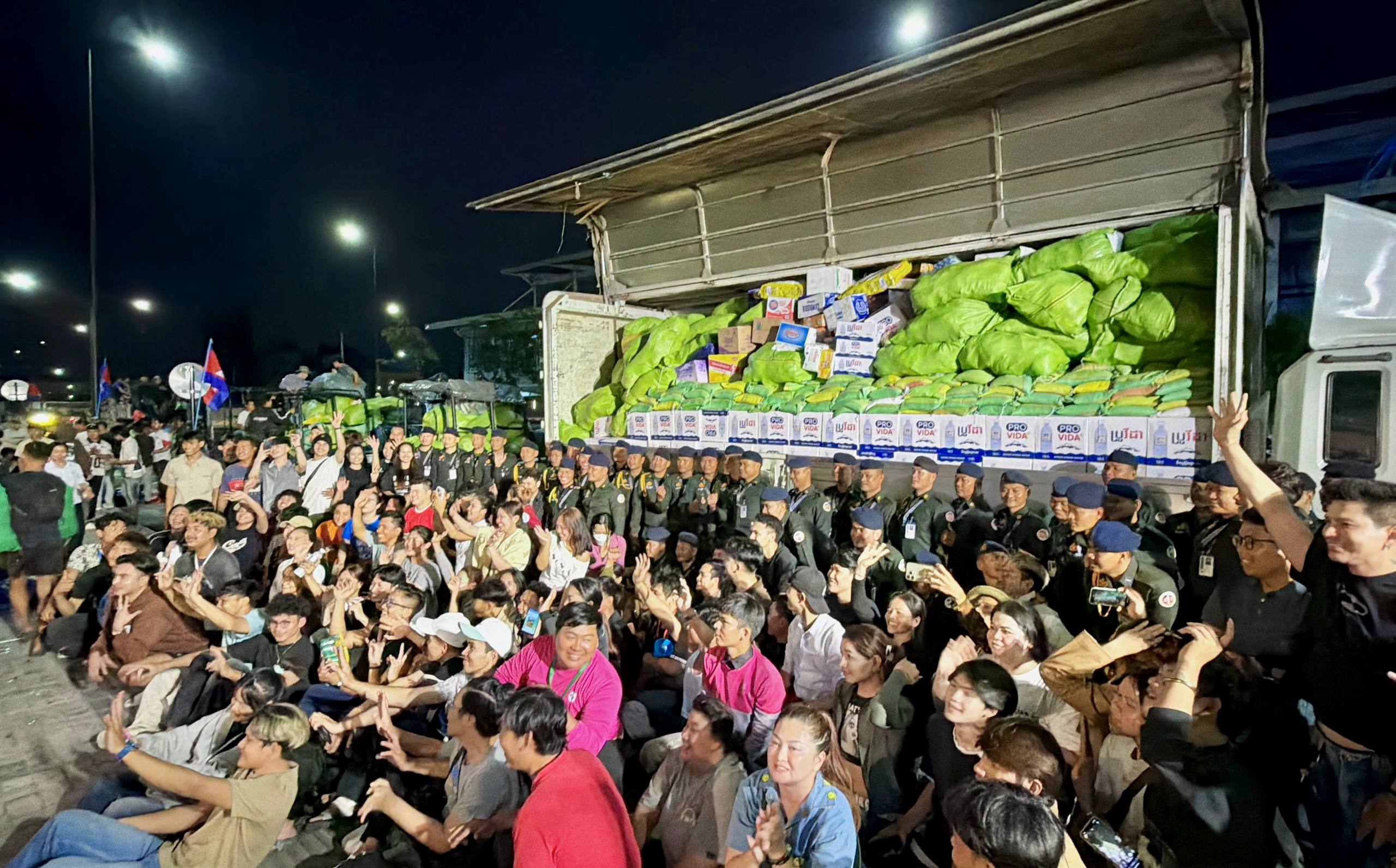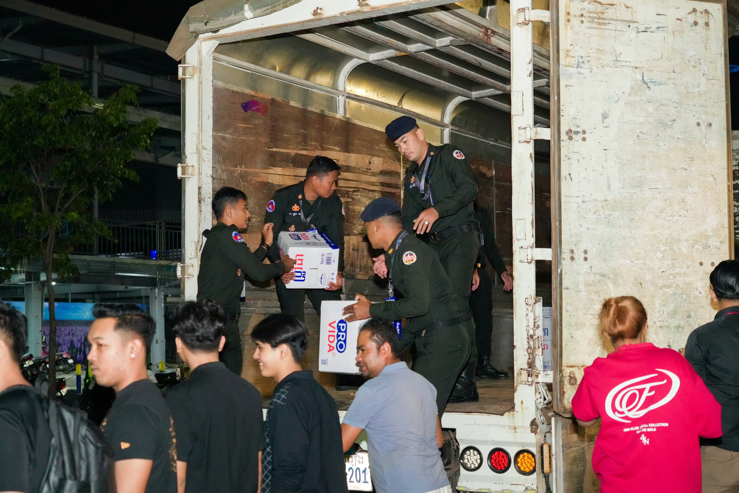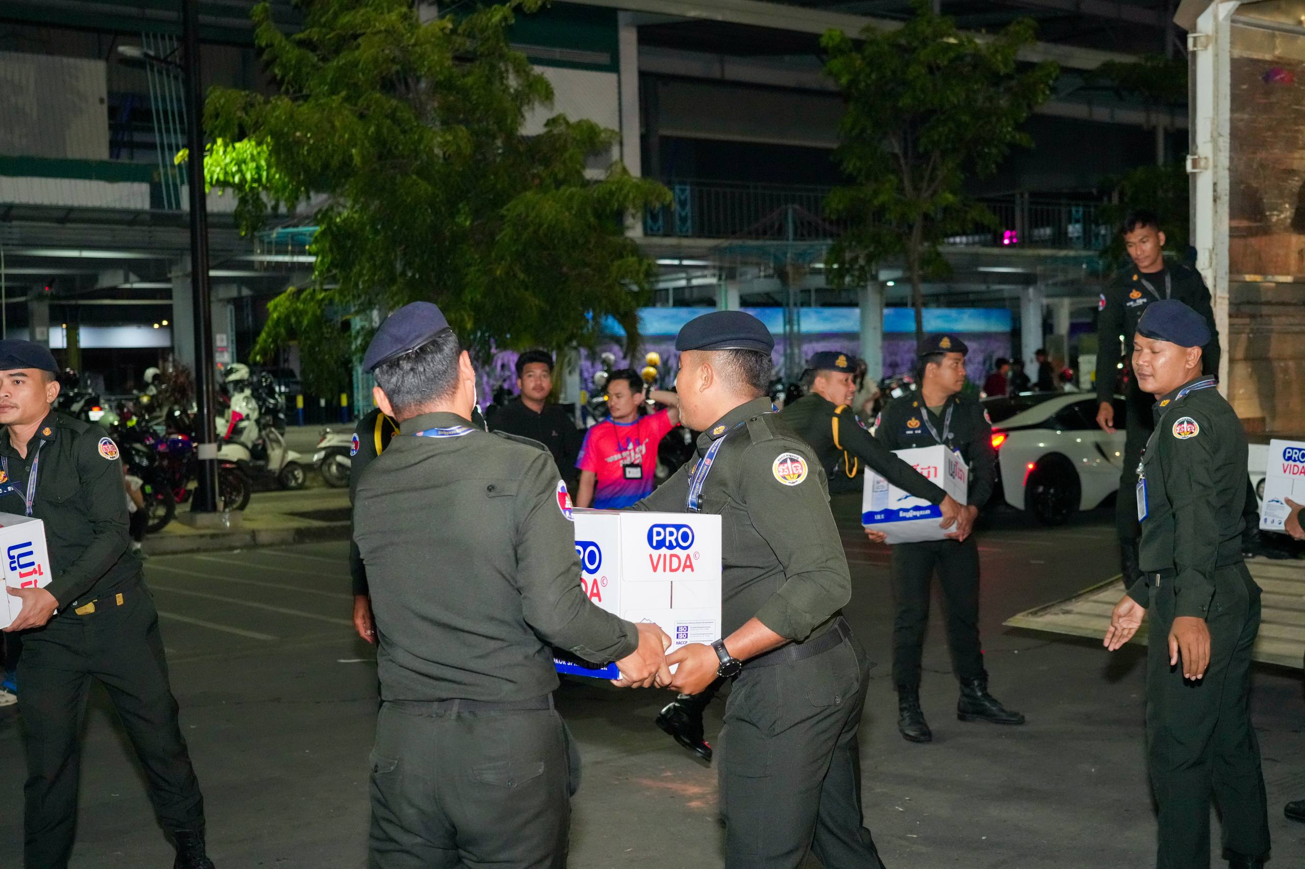 នៅយប់ថ្ងៃទី១០ ខែធ្នូ ឆ្នាំ២០២៥ កម្លាំងអាវុធហត្ថរាជធានីភ្នំពេញ បានចូលរួមជួយរៀបចំលើកជញ្ជូនស្បៀង និងសម្ភារៈចាំបាច់ផ្សេងៗ ចេញពីទីតាំងកន្លែងទទួលជំនួយសម្រាប់ជូនទៅបងប្អូនជនភៀសសឹក និងបងប្អូនកងទ័ពនៅជួរមុខ ត្រង់ចំណុច ហាង Eatmore បឹងកក់ រាជធានីភ្នំពេញ និងបានប្រើប្រាដ់រថយន្តជួយដឹកសំភារៈទៅឃ្លាំងស្តុករបស់ Eatmoreផងដែរ។