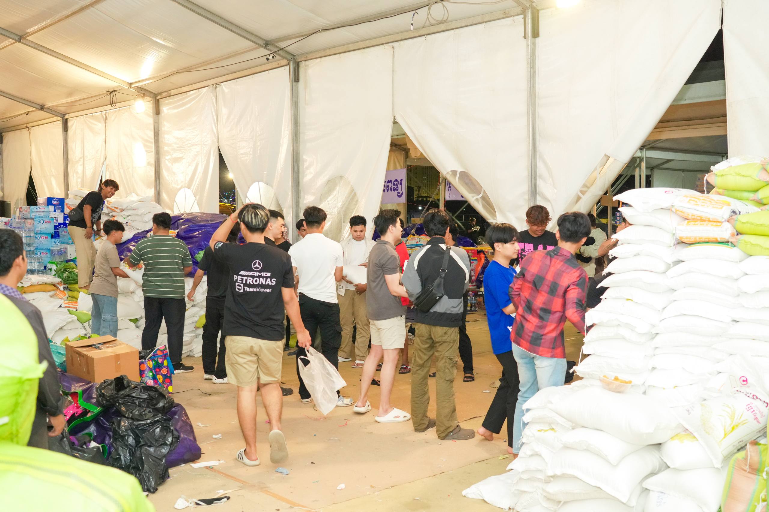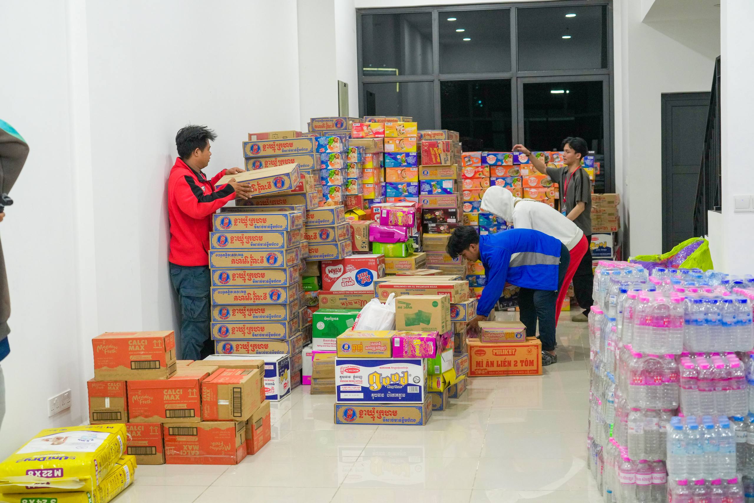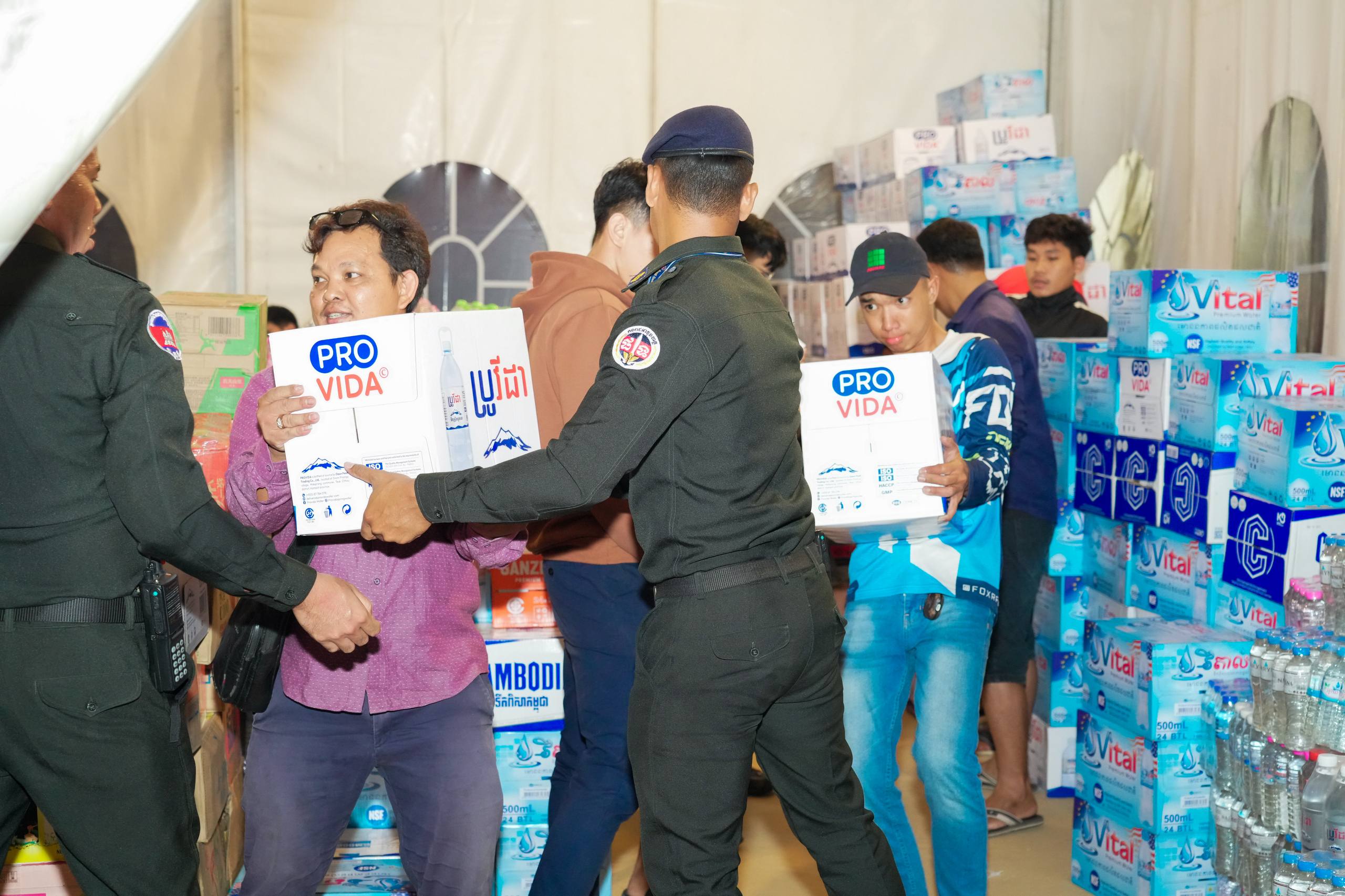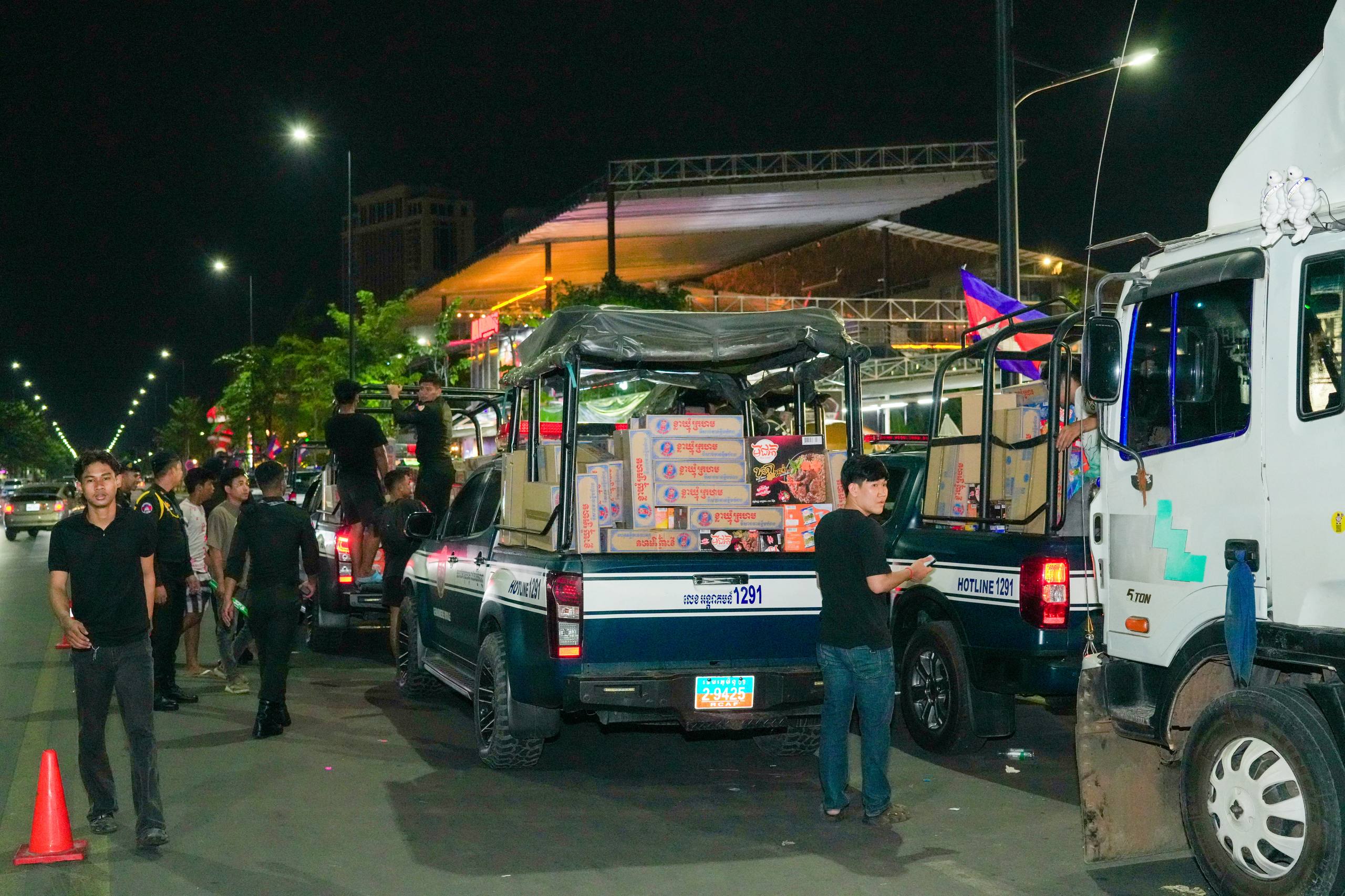 នៅយប់ថ្ងៃទី១០ ខែធ្នូ ឆ្នាំ២០២៥ កម្លាំងអាវុធហត្ថរាជធានីភ្នំពេញ បានចូលរួមជួយរៀបចំលើកជញ្ជូនស្បៀង និងសម្ភារៈចាំបាច់ផ្សេងៗ ចេញពីទីតាំងកន្លែងទទួលជំនួយសម្រាប់ជូនទៅបងប្អូនជនភៀសសឹក និងបងប្អូនកងទ័ពនៅជួរមុខ ត្រង់ចំណុច ហាង Eatmore បឹងកក់ រាជធានីភ្នំពេញ និងបានប្រើប្រាដ់រថយន្តជួយដឹកសំភារៈទៅឃ្លាំងស្តុករបស់ Eatmoreផងដែរ។