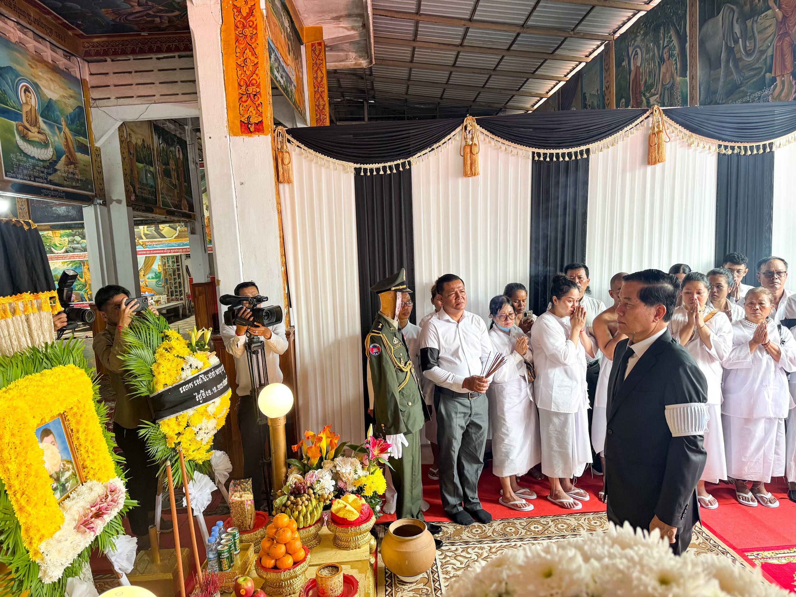 ភ្នំពេញ៖ លោក ឃួង ស្រេង អភិបាលរាជធានីភ្នំពេញ បានដឹកនាំគណៈប្រតិភូរដ្ឋបាលរាជធានីភ្នំពេញ អញ្ជើញគោរពវិញ្ញាណក្ខន្ធសព លោកព្រិន្ទបាលឯក សៅ វីរៈដារ៉ា មានជន្មាយុ ២៧ឆ្នាំ ជាយោធិន នៅកងពលធំអន្តរាគមន៍លេខ៣ នៃកងទ័ពជើងគោក នៅវត្តចាក់អង្រែលើ សង្កាត់ចាក់ អង្រែលើ ខណ្ឌមានជ័យ កាលពីថ្ងៃទី១១ ខែធ្នូ ឆ្នាំ២០២៥ ។