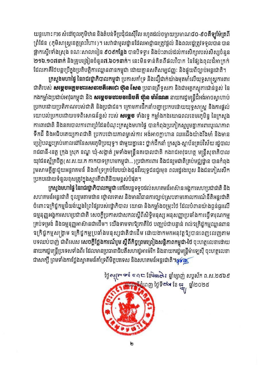 ខាងក្រោមនេះ ជាសេចក្ដីប្រកាសព័ត៌មានរបស់ក្រសួងមហាផ្ទៃ ៖