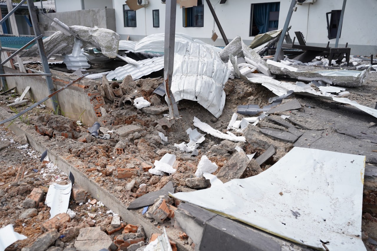 (ពោធិ៍សាត់)៖ នៅរសៀលថ្ងៃសុក្រ ទី១២ ខែធ្នូ ឆ្នាំ២០២៥នេះ អគារស្នាក់ ស្ថិតនៅក្នុងឃុំថ្មដា ស្រុកវាលវែង ខេត្តពោធិ៍សាត់ ដែលរងការបាក់បែកដោយសារទម្ងន់គ្រាប់របស់កងទ័ពថៃ ក្នុងសង្គ្រាមឈ្លានពានរបស់ថៃរយៈប្រមាណជា៥ថ្ងៃកន្លងមកនេះ។