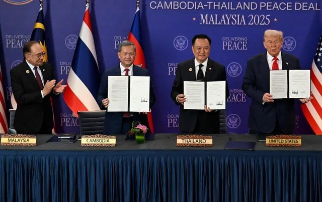 ប្រធានាធិបតីសហរដ្ឋអាមេរិក លោក Donald Trump បាននិយាយកាលពីថ្ងៃសុក្រ ទី១២ ខែធ្នូ ថា មេដឹកនាំរបស់ប្រទេសកម្ពុជានិងថៃ បានព្រមព្រៀងសន្តិភាពជាថ្មី បន្ទាប់ពីការប៉ះទង្គិចគ្នាដ៏រយៈពេលជាច្រើនថ្ងៃបានគំរាមកំហែងធ្វើឲ្យអន្តរាយដល់បទឈប់បាញ់ដែលរដ្ឋបាលសហរដ្ឋអាមេរិកបានជួយម្របសម្រួលកាលពីដើមឆ្នាំនេះ។ លោក Trump បានប្រកាសពីកិច្ចព្រមព្រៀងដើម្បីចាប់ផ្តើមជាថ្មីបទឈប់បាញ់នៅក្នុងការបង្ហោះនៅលើបណ្តាញផ្សព្វផ្សាយសង្គមបន្ទាប់ពីការសន្ទនាតាមទូរស័ព្ទជាមួយនាយករដ្ឋមន្ត្រីថៃ លោក Anutin Charnvirakul និងនាយករដ្ឋមន្ត្រីកម្ពុជា សម្តេច Hun Manet។ លោក Trump បាននិយាយនៅក្នុងការបង្ហោះ លើបណ្តាញ Truth Social របស់លោកថា «ប្រទេសទាំងពីរបានព្រមព្រៀងបញ្ឈប់ការបាញ់ប្រហារទាំងអស់ ហើយត្រឡប់ទៅរកកិច្ចព្រមព្រៀងសន្តិភាពដើមដែលបានធ្វើឡើងជាមួយខ្ញុំ និងភាគីទាំងពីរ ដោយមានជំនួយពីនាយករដ្ឋមន្ត្រីដ៏អស្ចារ្យរបស់ប្រទេសម៉ាឡេស៊ី លោក Anwar Ibrahim»។ លោកTrump បាននិយាយបន្ថែមថា «វាជាកិត្តិយសរបស់ខ្ញុំក្នុងការធ្វើការជាមួយសម្តេចHun Manet និងលោក Anutin ក្នុងការដោះស្រាយអ្វីដែលអាចវិវត្តទៅជាសង្គ្រាមដ៏ធំមួយរវាងប្រទេសដ៏អស្ចារ្យ និងវិបុលភាព ទាំងពីរ»។